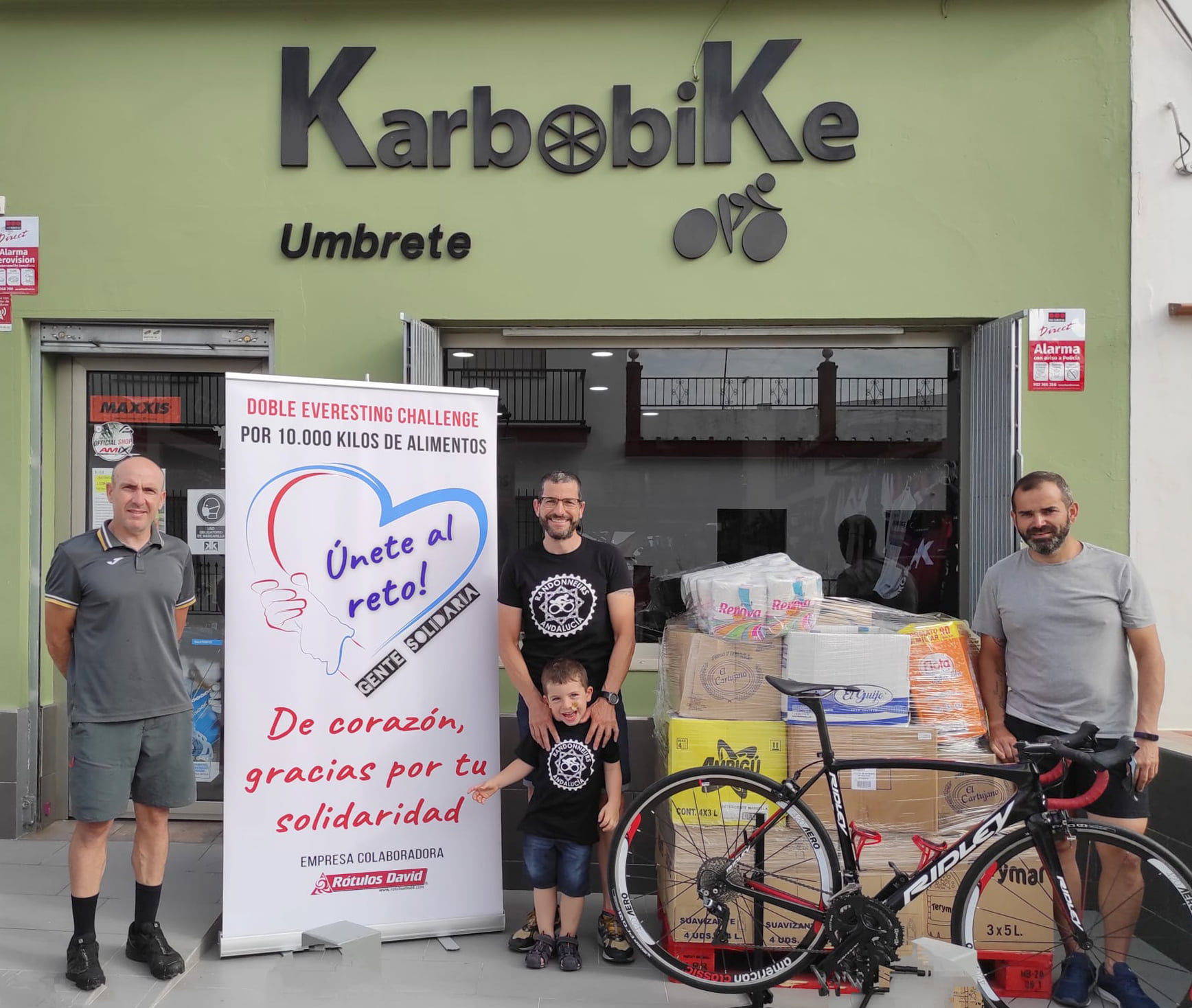 De este modo, KarbobiKe hizo gala de una gran generosidad entregando esta importante cantidad de productos de primera necesidad a Diego, en su local situado en Calle Valdés Leal 12, de Umbrete (http://www.karbobike.com/).