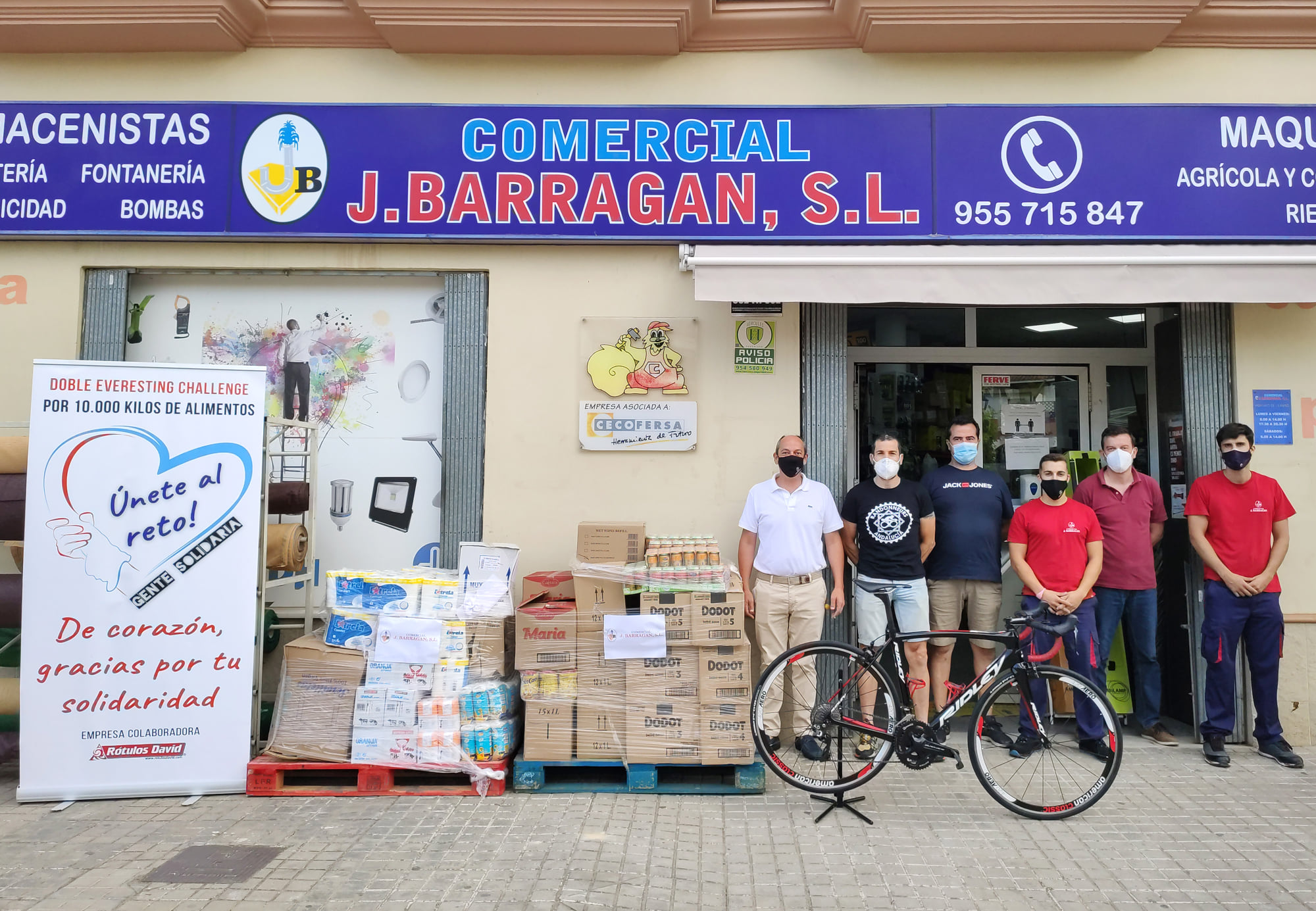 Desde el Ayuntamiento de Benacazón te informamos que la empresa "Comercial J. Barragán" ha donado más de 3.000 kilos de productos al reto solidario emprendido por el ciclista Diego Ruiz, que tratará de alcanzar los 10.000 kilos antes de llevar a cabo su Doble Everesting Challenge.