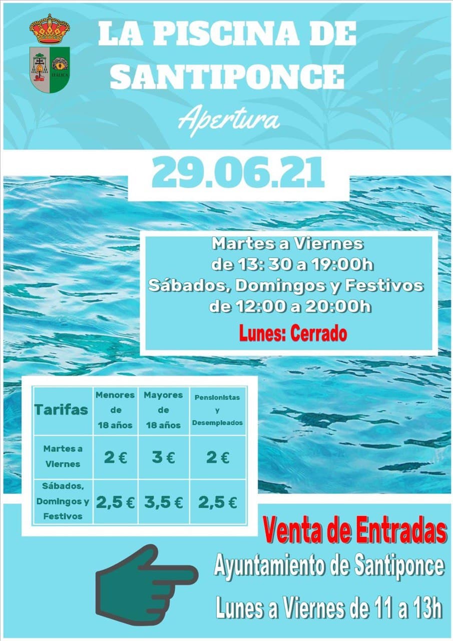 La nueva temporada de piscina 2021 abrirá sus puertas el martes 29 de junio.