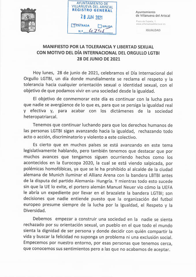 #VillanuevadelAriscal #ElPuebloQueTúMereces #ManifiestoPorLaDiversidad