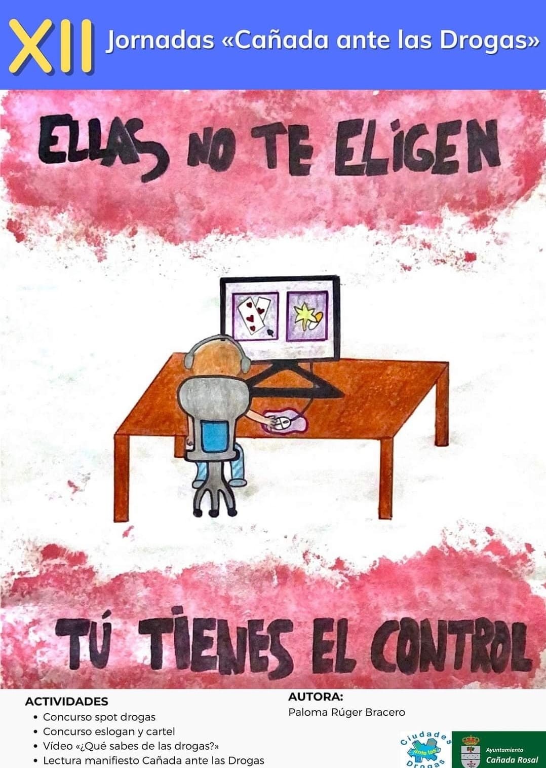Entre estas actividades, destacar el concurso de carteles y el concurso de spot sobre las drogas, en el cual han participado alumnos/as del IES Cañada Rosal. Con estas actividades quedan clausurada las Jornadas de "Cañada ante las Drogas" después de 12 años consecutivos.