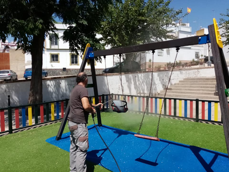 El Ayuntamiento de Cantillana, a través de la Delegación de Servicios Generales, dirigida por José Manuel López, ha llevado cabo de nuevo, diversas labores de limpieza y desinfección en las plazas y parques de nuestra localidad.