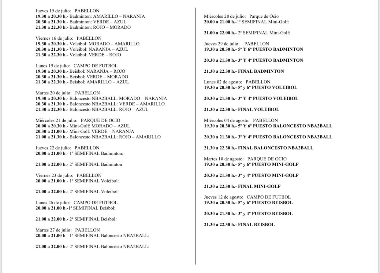 Aquí tienes el CALENDARIO de las OLIMPIADAS INFANTILES 2021 que darán comienzo el próximo 15 de julio.