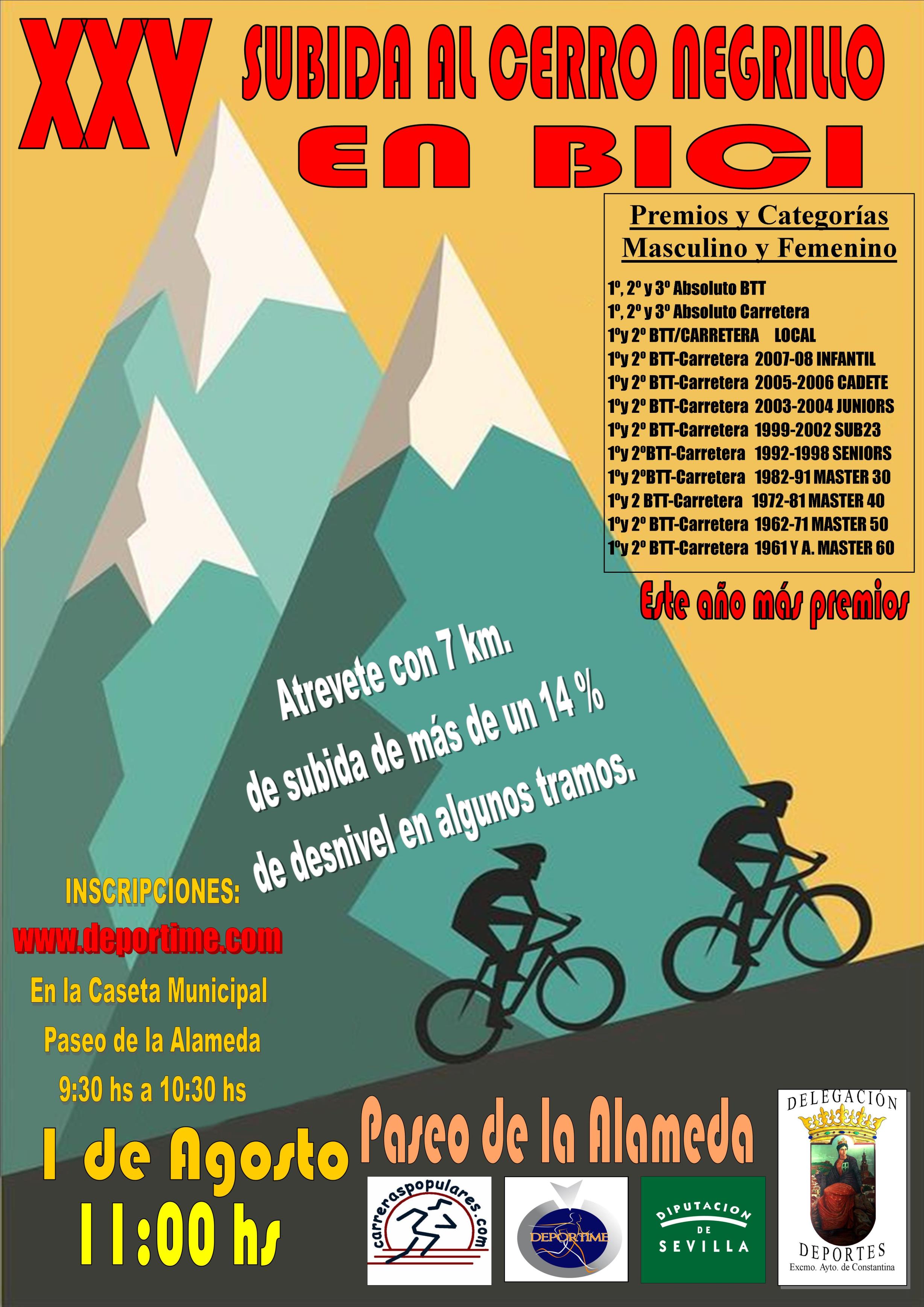 El próximo domingo 1 de agosto tendrá lugar, a las 11:00 horas, la XXV Subida al Cerro Negrillo en Bicicleta, organizada por la Delegación de Deportes del Ayuntamiento de Constantina en colaboración con la Diputación de Sevilla.