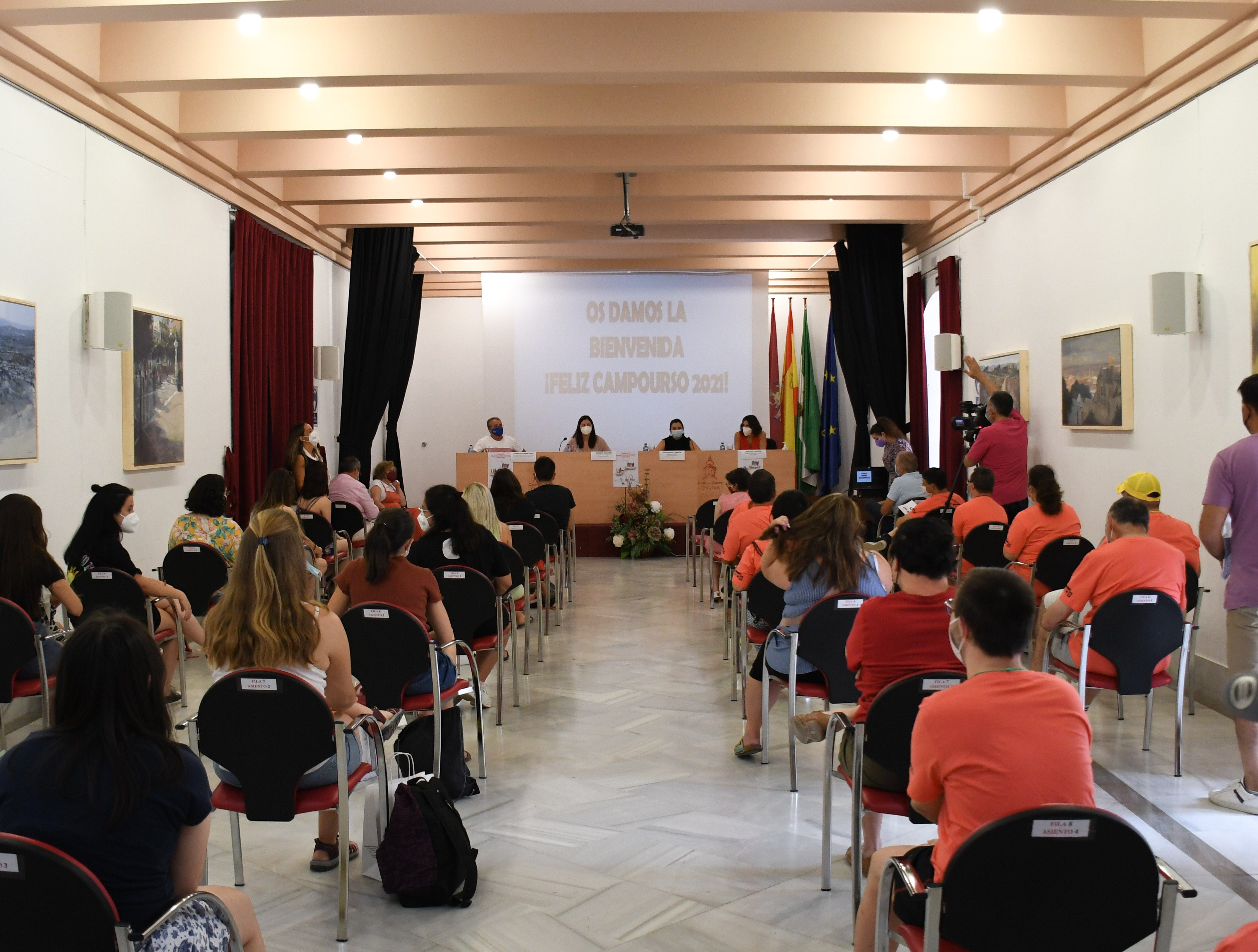 Brígida Pachón, Delegada municipal de Bienestar Social del Ayuntamiento de Osuna, acompañada de María José Jaldón, Directora del Centro Ocupacional "Nuevo Reto", Francisco Martínez, Presidente de la Asociación "MIMO" y Ana Lebrón, Delegada municipal de Juventud, presidió el pasado lunes 12 de julio el acto de bienvenida al Campo de Voluntariado 2021 en las instalaciones municipales de la Casa de la Cultura.