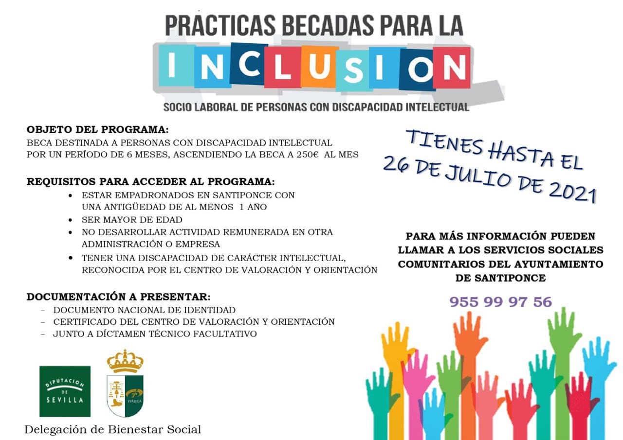 Desde hoy mismo se podrá solicitar presencialmente en el Ayuntamiento de Santiponce una beca para favorecer la inclusión socio-laboral de personas con discapacidad intelectual. Esta ayuda se otorgará en durante un periodo comprendido entre seis y doce meses.