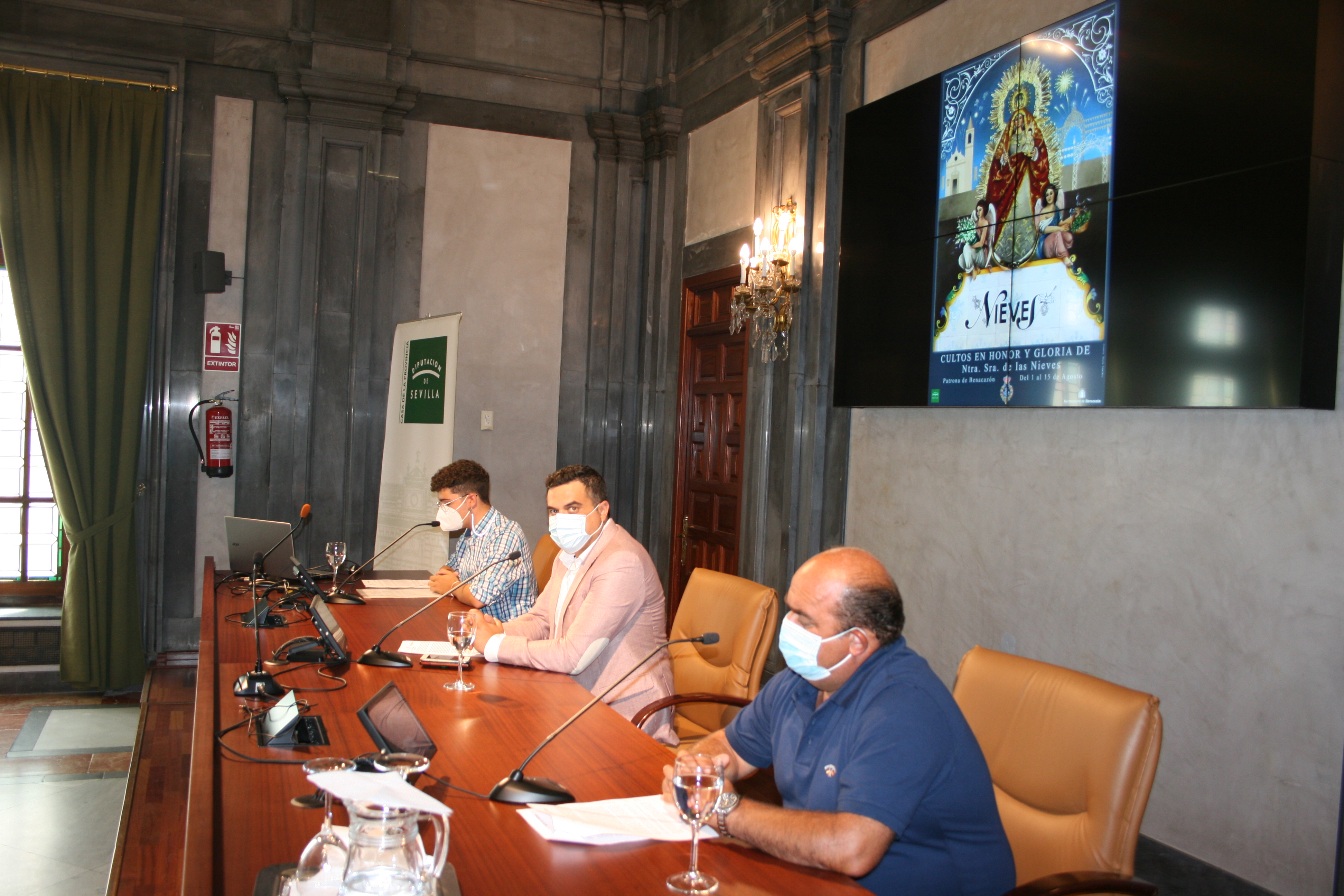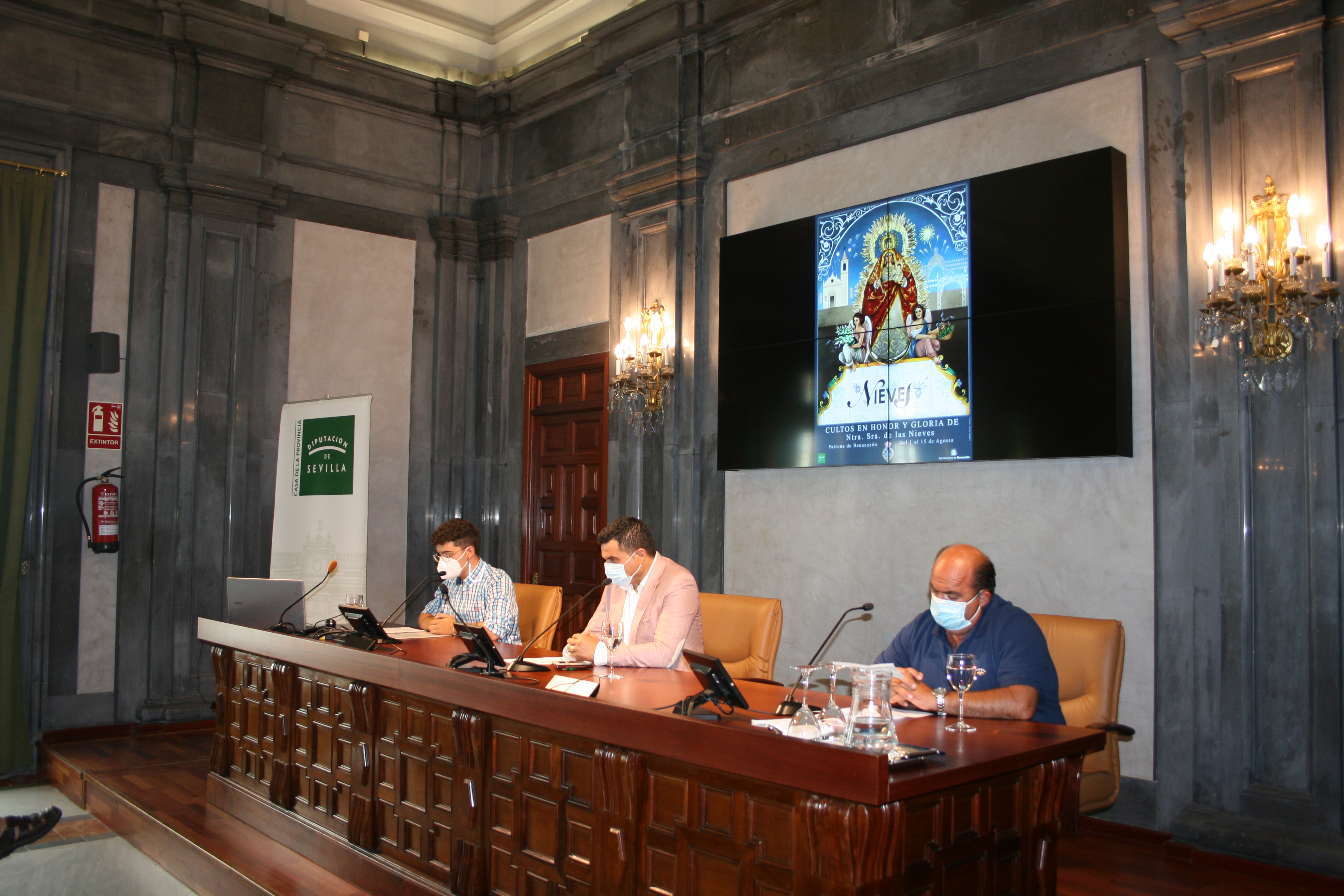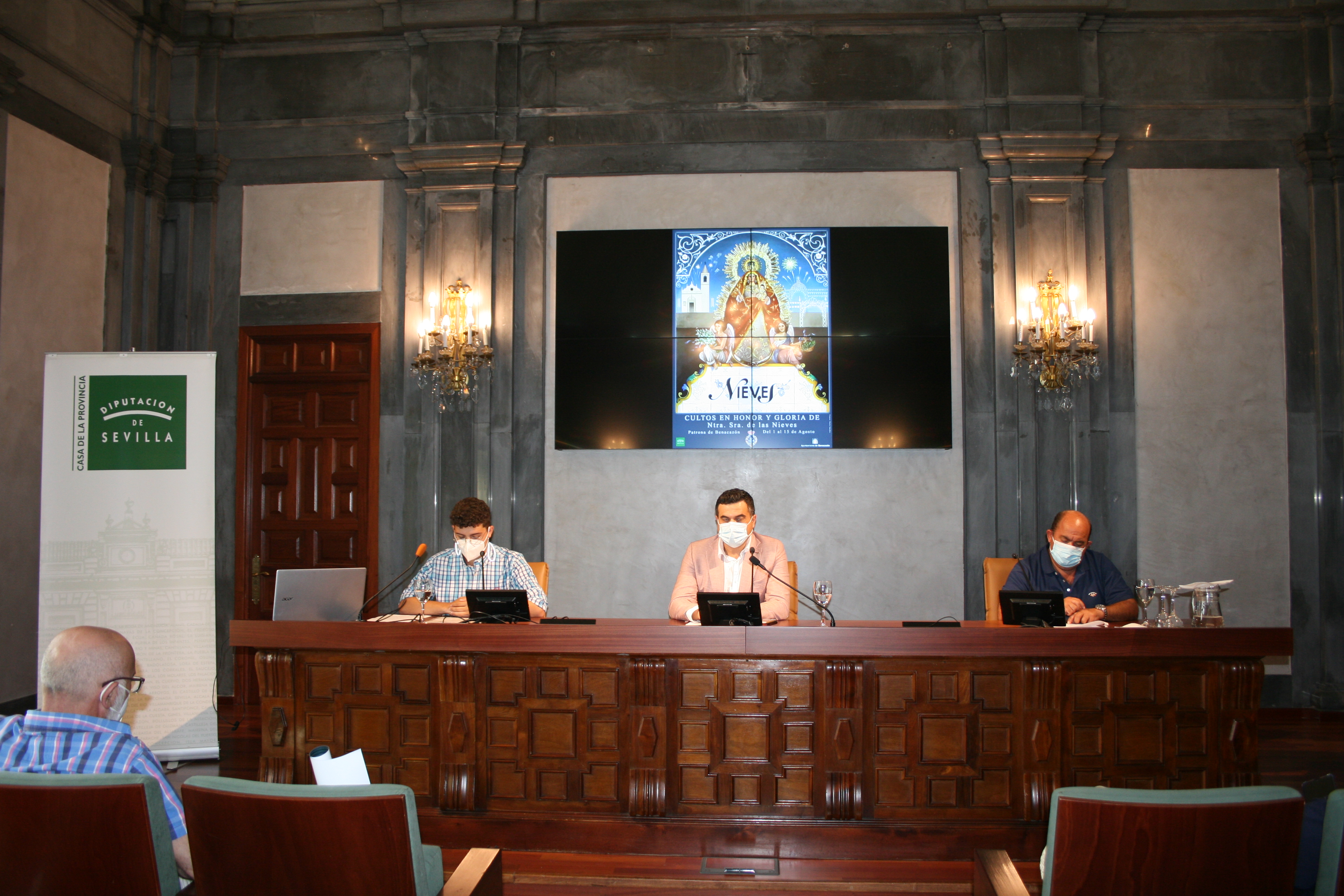 El acto fue presidido por el autor del cartel, Mario Sánchez Prieto, que manifestó sentirse "muy orgulloso por haber tenido esta gran oportunidad de ilustrar con su obra las Fiestas Patronales de su pueblo y poder presentarlo oficialmente en la Casa de la Provincia", acompañado del Alcalde de Benacazón, Pedro Oropesa Vega, el Concejal de Festejos, Diego Perejón Luna, y demás miembros del Equipo de Gobierno y de la Comisión de Ntra. Sra. de las Nieves". Por su parte, el primer edil mostró su agradecimiento a la Diputación Provincial "por brindarnos esta privilegiada ocasión de difundir nuestras fiestas y demás actos culturales y turísticos en un marco inigualable, y tan próximo a la Catedral de Sevilla, como es la Casa de la Provincia".