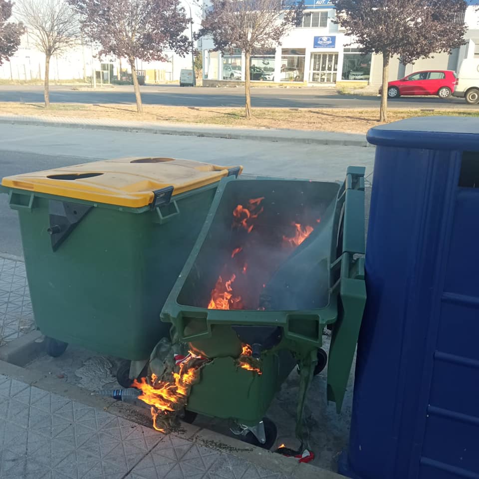 El vandalismo acabó con un contenedor el pasado sábado en la avenida Igualdad, según confirma el delegado de Coordinación de Barrios, Jose Romero.