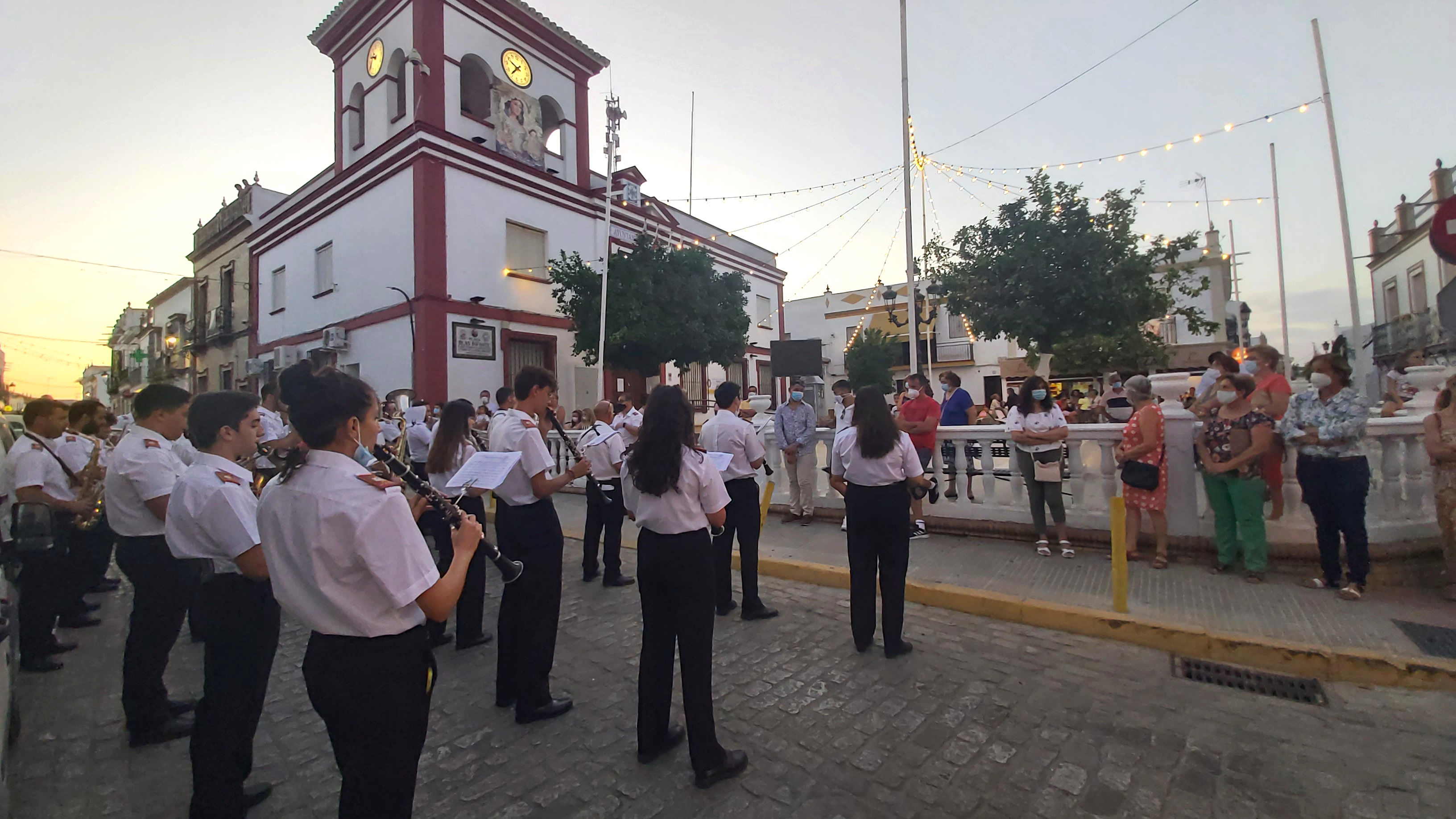 El acto estuvo precedido del Tradicional Pasacalles por el recorrido oficial de nuestro pueblo, amenizado por la Asociación Filarmónica y Cultural de Albaida del Aljarafe, que nos deleitó con un recital de marchas a las puertas del Ayuntamiento.