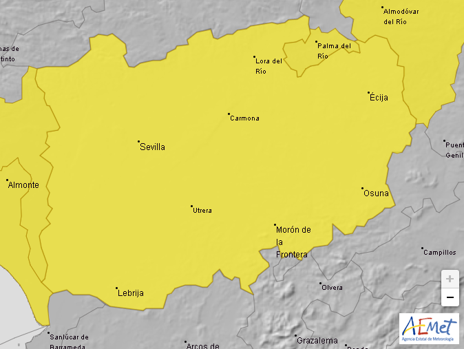 La Agencia Estatal de Meteorología establece el aviso amarillo por altas temperaturas, hoy jueves 5 de agosto de 14 a 21 horas. Temperatura máxima 39º C.