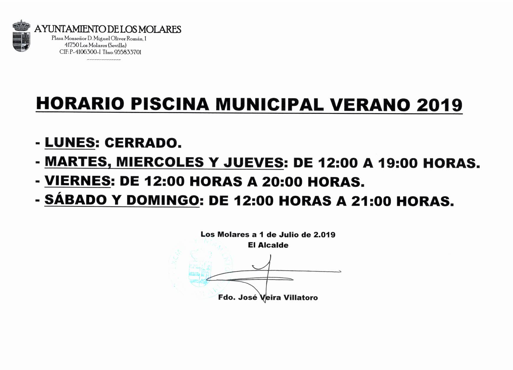 Imagen Ubicación Categoría noticia Deporte Mostrar en el carrusel de la sección No Fecha Mar, 02/07/2019 - 12:06 Más información http://www.losmolares.es/es/actualidad/noticias/HORARIO-PISCINA-MUNICIPAL-2019/
