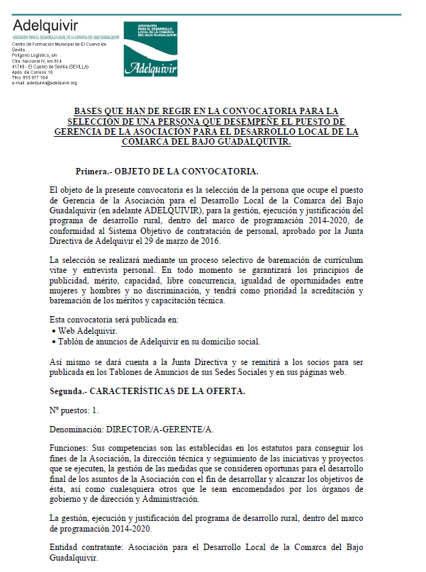 Bases convocatoria contratacion de gerente modificaciones Comisión de Valoración Imagen Ubicación Categoría noticia Formacion y Empleo Mostrar en el carrusel de la sección No Fecha Vie, 25/05/2018 - 11:23 Más información http://www.losmolares.es/es/actualidad/noticias/Bases-convocatoria-contratacion…