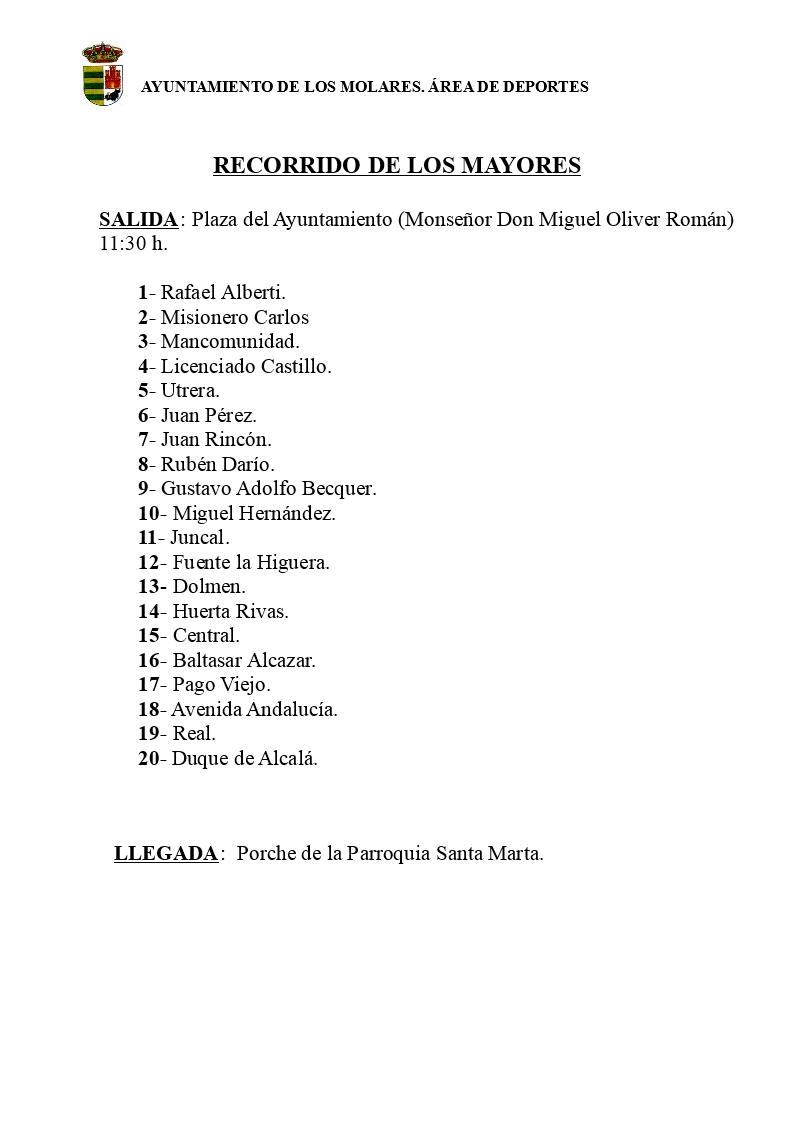 RECORRIDO DE LA MARCHA CICLOTURISTA DEL DÍA DE ANDALUCÍA