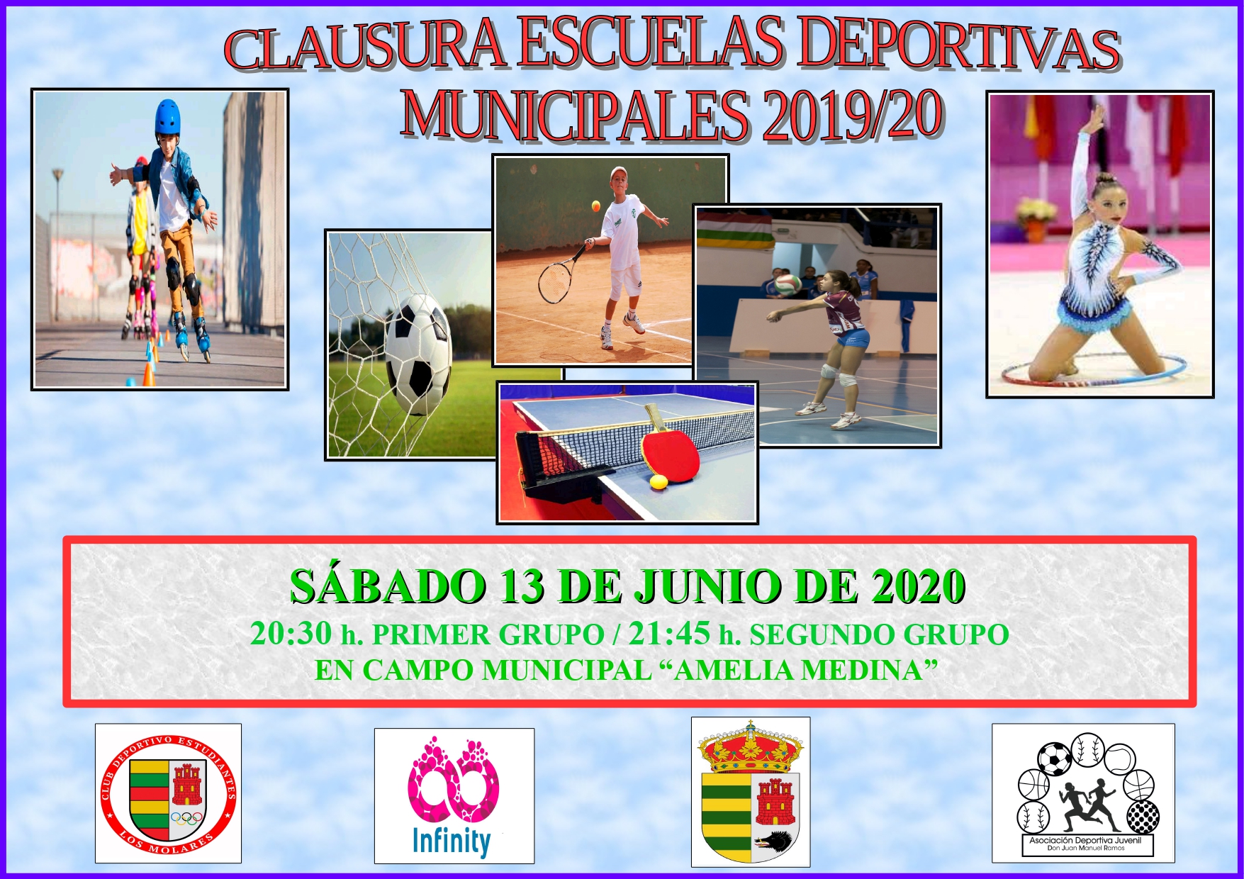 Imagen Ubicación Categoría noticia Deporte Mostrar en el carrusel de la sección No Fecha Mar, 02/06/2020 - 14:44 Más información http://www.losmolares.es/es/actualidad/noticias/CLAUSURA-ESCUELAS-DEPORTIVAS-MU…