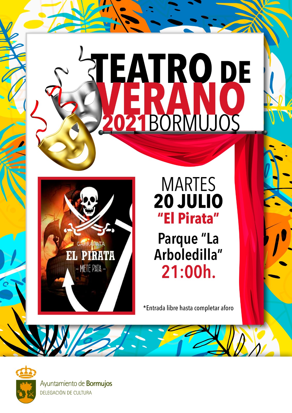 Organizado por la Delegación de Cultura, se pone en escena "El Pirata" a partir de las 21.00 horas, la historia de un pirata que cambia la finalidad de su barco por el arte de un circo en el mar, que contará con la participación de los niños del público.