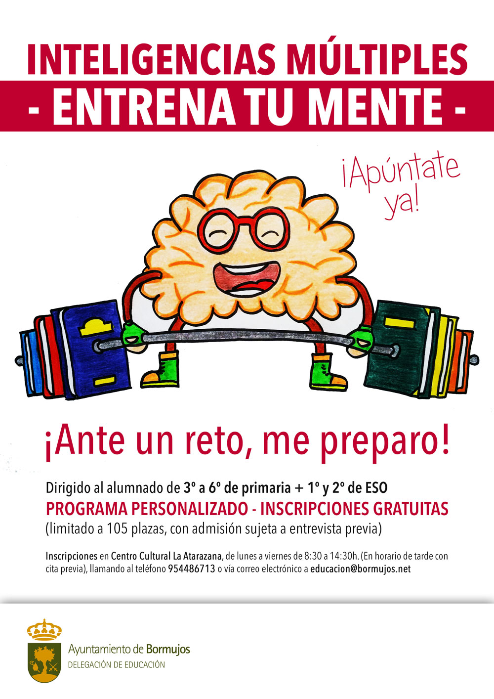 El Ayuntamiento de Bormujos, a través de la Delegación de Educación, en su interés por colaborar con las familias en la mejora de la educación de sus hijas e hijos, pone en marcha un programa novedoso dirigido al alumnado de 3º a 6º de Primaria y de 1º y 2º de ESO, con el objetivo de facilitar a las niñas y niños estrategias y técnicas de aprendizaje para potenciar el estudio autónomo basado en las Inteligencias Múltiples, con la intención de evitar futuros fracasos escolares.
