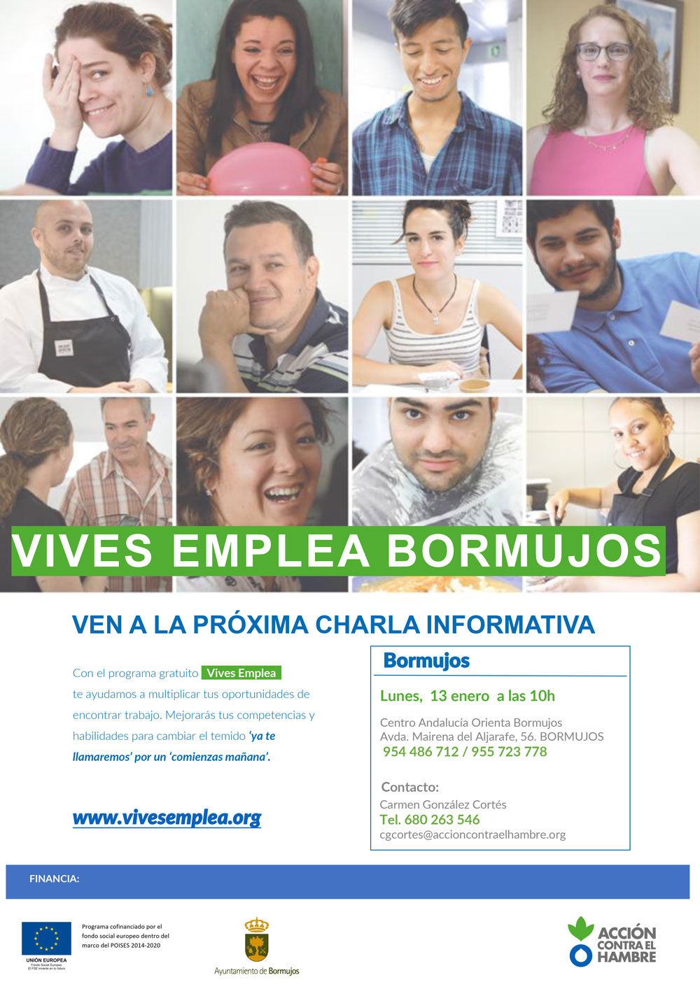 El Ayuntamiento de Bormujos, a través de la Delegación de Empleo, ha apostado por dar continuidad a un programa de gran éxito colaborando en la financiación y logística de su tercera edición con la ONG Acción contra el Hambre España y el Fondo Social Europeo, a partir de ahora nuestra localidad será uno de los centros de referencia de esta iniciativa pasando a llamarse #VIVESEMPLEABORMUJOS.