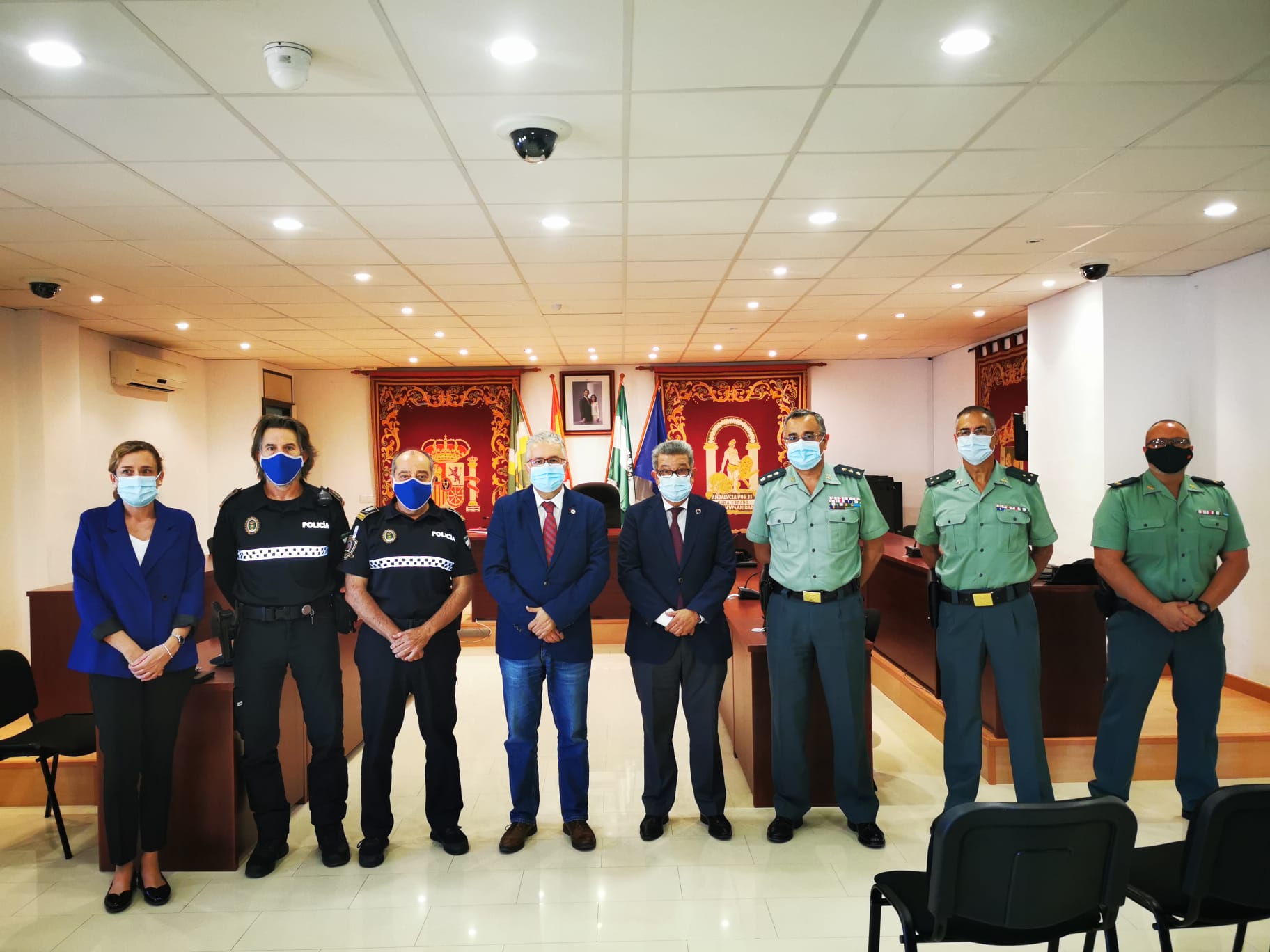 El subdelegado del Gobierno participó también en la reunión de la Junta Local de Seguridad, en la que se realizó un análisis de la seguridad en el municipio y en la que estuvieron presentes también el alcalde, Francisco Molina; el primer teniente de alcalde, Manuel Romero; el subinspector jefe de la Policía Local, Diego Gaviño; el oficial de la Policia Local, Leonardo Rodríguez; al Capitán Jefe de la Tercera Compañía con sede en Sanlúcar la Mayor, el Coronel Jefe de la Comandancia de Sevilla y el Comandante del Puesto de San Juan de Aznalfarache.
