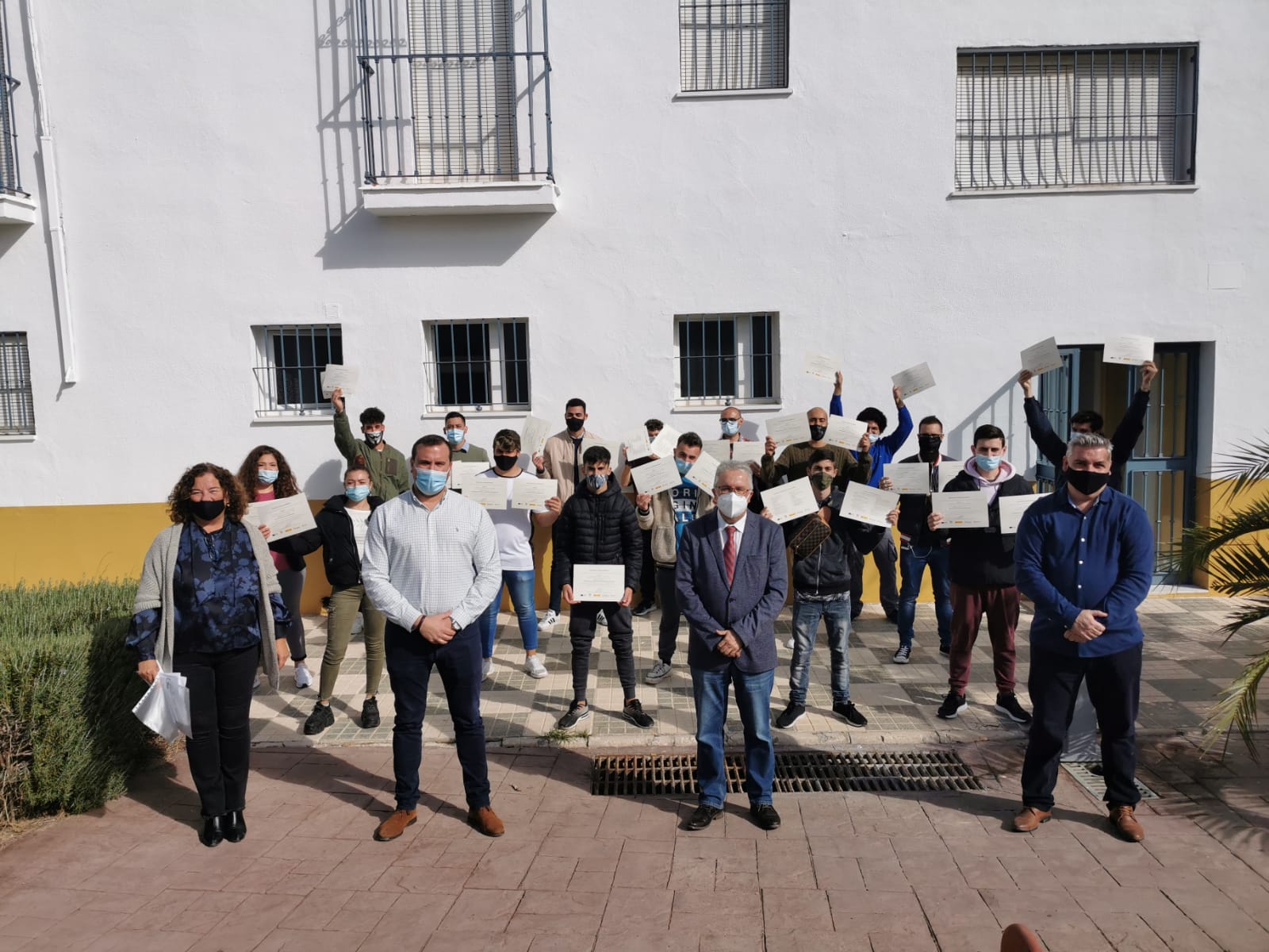 En la clausura del curso han recibido las felicitaciones del alcalde, Francisco Miguel Molina Haro, y el delegado de Empleo, Jeronimo Heredia Pozo, que les auguran buenas posibilidades y muy cercanas. De hecho, la empresa Macoin Servicios Integrados, S.L., que les ha dado la formación, se ha comprometido a ofrecer empleo a estos jóvenes en caso de ser requeridos sus servicios por el Ayuntamiento.