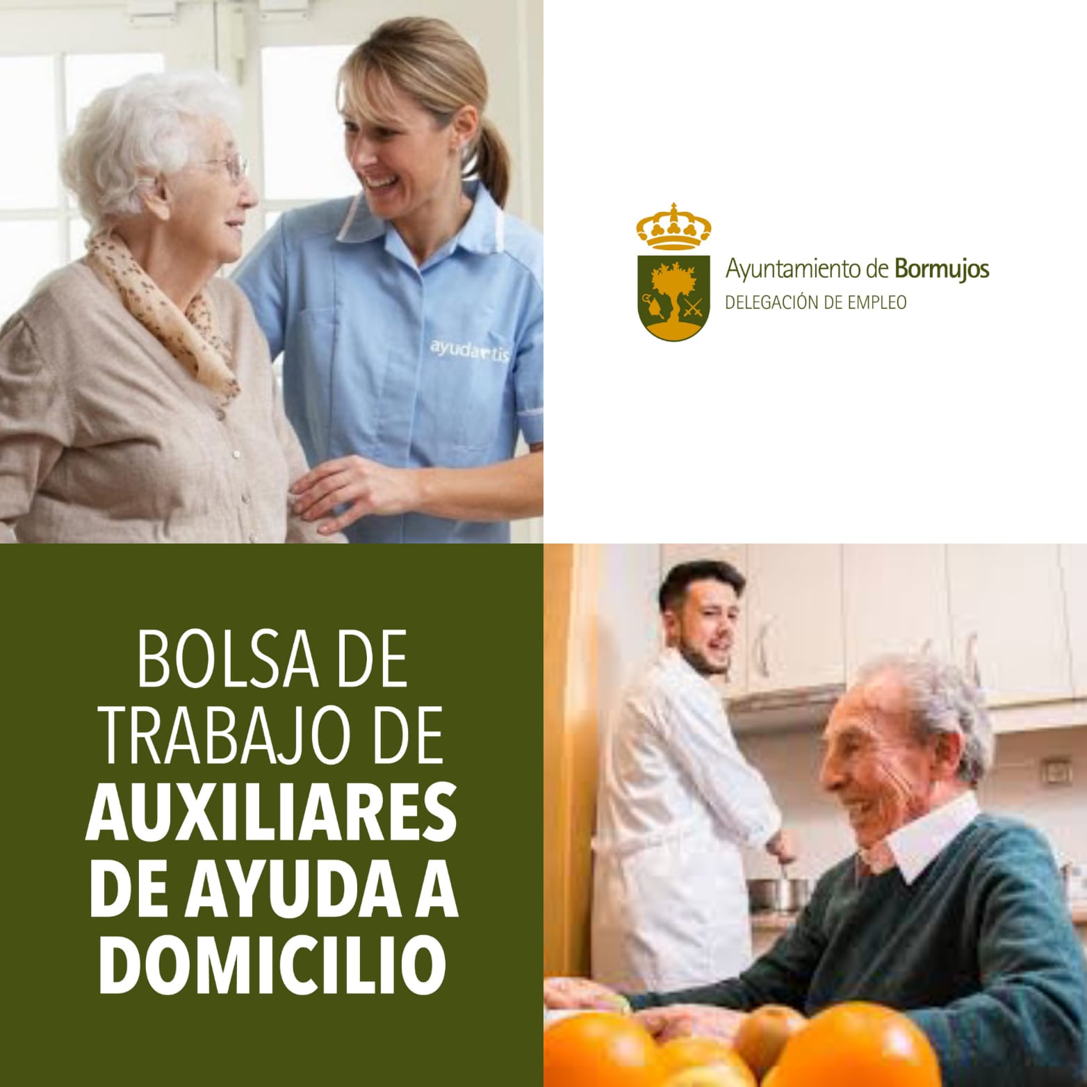El Ayuntamiento de Bormujos, siguiendo su línea de promoción de procedimientos públicos que redunden en oportunidades de empleo sobre todo en estos momentos de crisis social y económica, informa a través de la Delegación de #Empleo que coordina Jerónimo Heredia Pozo del siguiente procedimiento público de selección para constituir una BOLSA DE TRABAJO DE AUXILIARES DE AYUDA A DOMICILIO según lo publicado en BOP Nº 89 de 20 de abril, al que continuarán otros como el de la bolsa municipal de auxiliares administrativos. La modalidad del contrato será el temporal, todo ello acogido a lo establecido en el Texto Refundido de la Ley del Estatuto de los Trabajadores, aprobado por Real Decreto Legislativo 2/2015, de 23 de octubre y tiene como finalidad cubrir las bajas laborales u otro tipo de vicisitudes que permitan seguir prestando este servicio tan importante para nuestros mayores. Para entrega de solicitudes acompañada de los respectivos méritos se deberá pedir CITA PREVIA (sólo ONLINE):- A través de: http://www.bormujos.es/ayuntamiento/cita-previa/