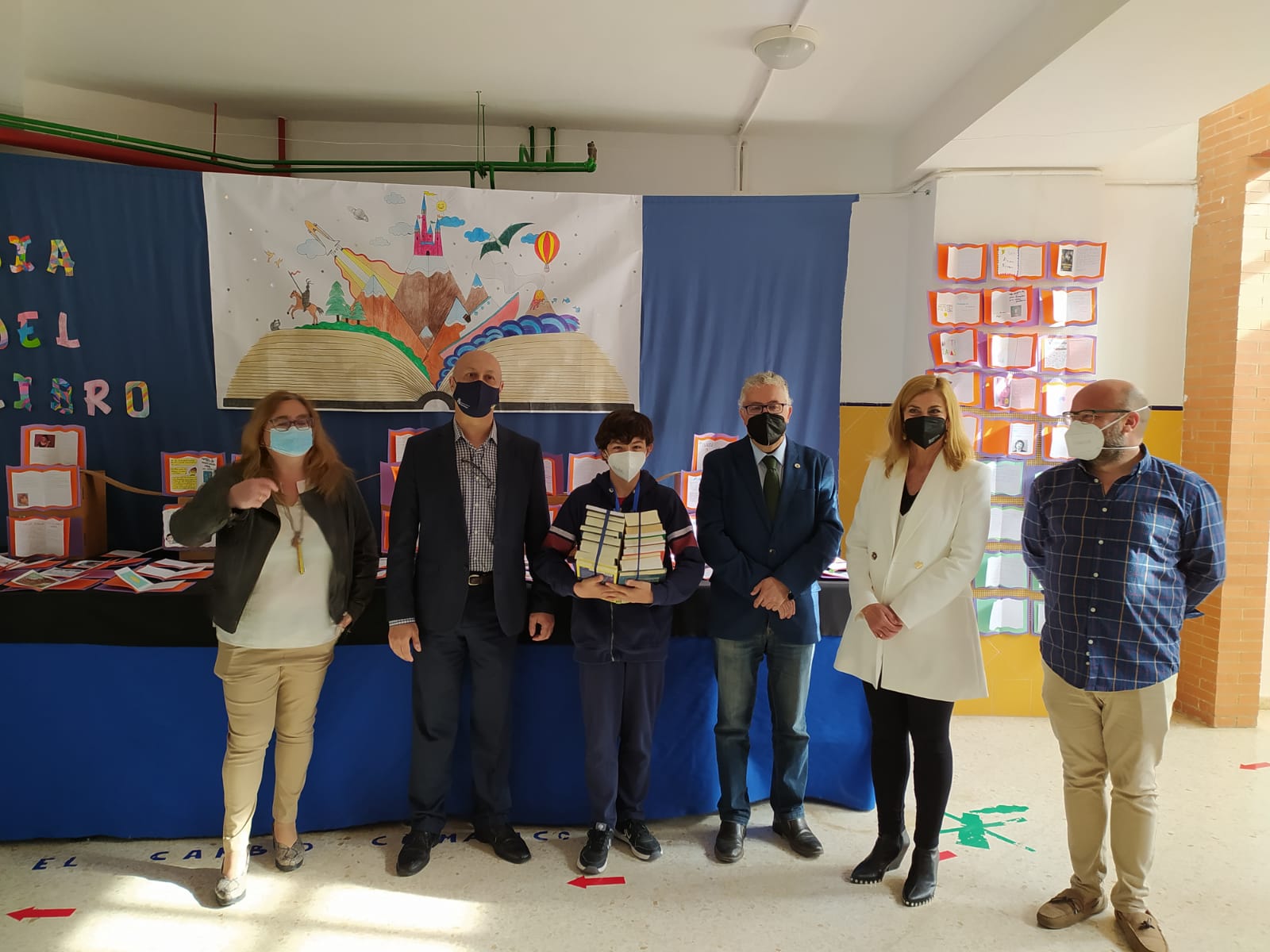 Junto a ellos y el equipo directivo, han visitado las originales creaciones del alumnado la delegada de Educación, Carmen Garfia y el delgado de Cultura y Fiestas, Jesús Macarro. Todos han felicitado a los estudiantes por sus trabajos y el esfuerzo por plasmar sus representaciones y han entregado a los ganadores el lote de libros como premio.