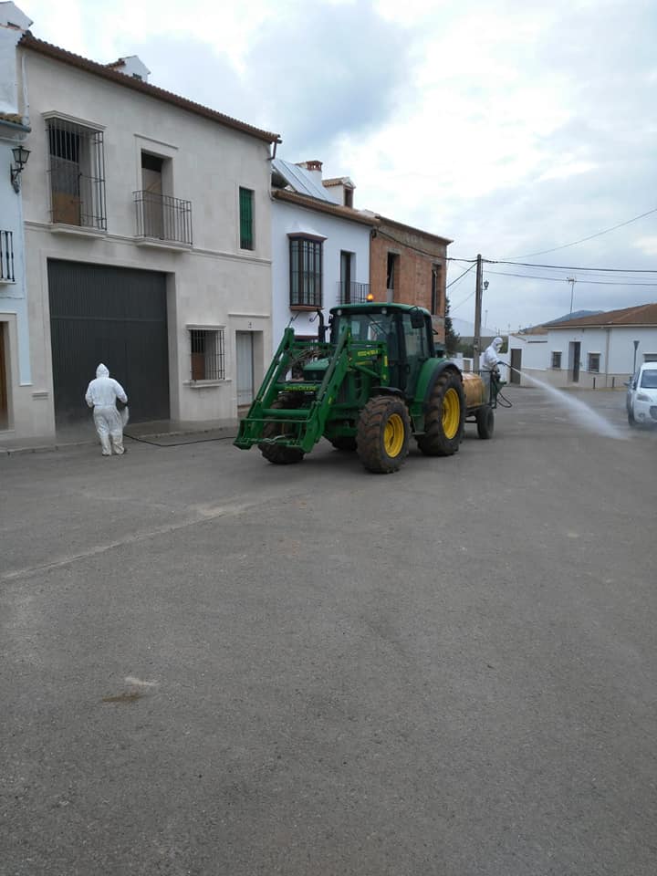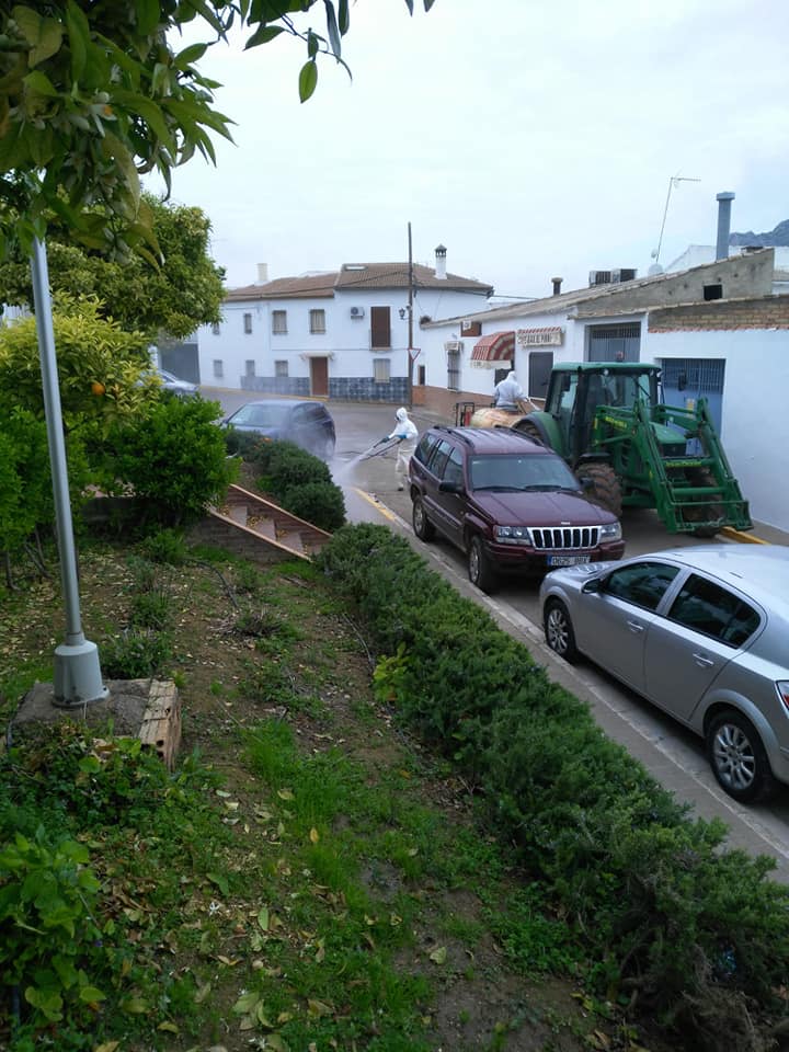 Hoy, de nuevo, se están fumigando todas las calles y plazas de Lora de Estepa para evitar la propagación del virus.