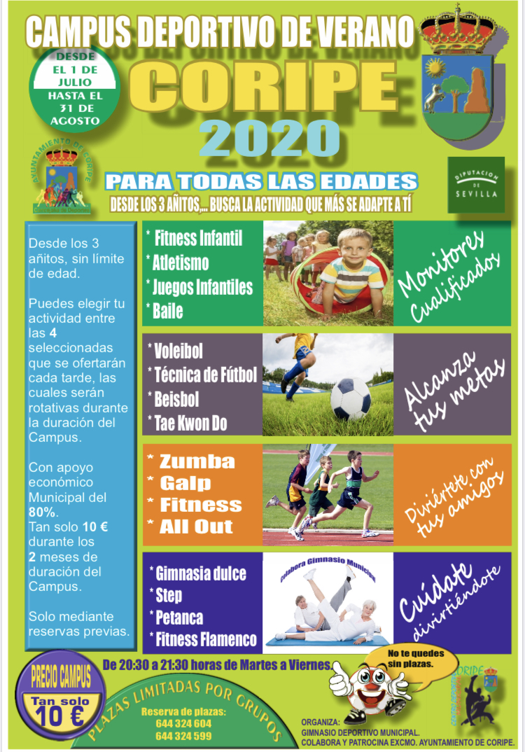 Se ruega la llegada al campo de fútbol municipal con 15 minutos de antelación para la previa desinfección de manos y toma de temperatura de todos los participantes, previo al inicio de las clases.