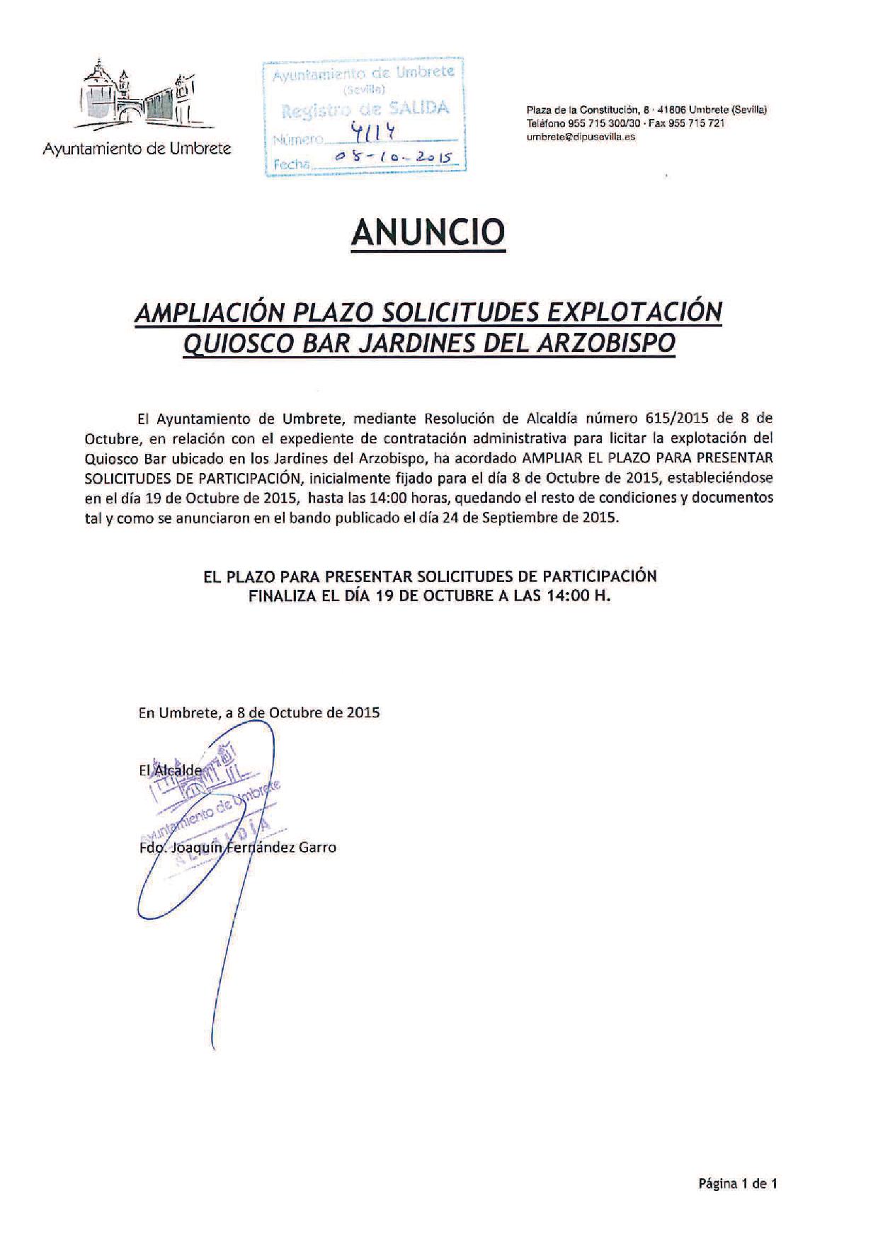 Se amplía el plazo de licitación para solicitar la explotación del Quiosco Bar de los Jardines del Arzobispo.