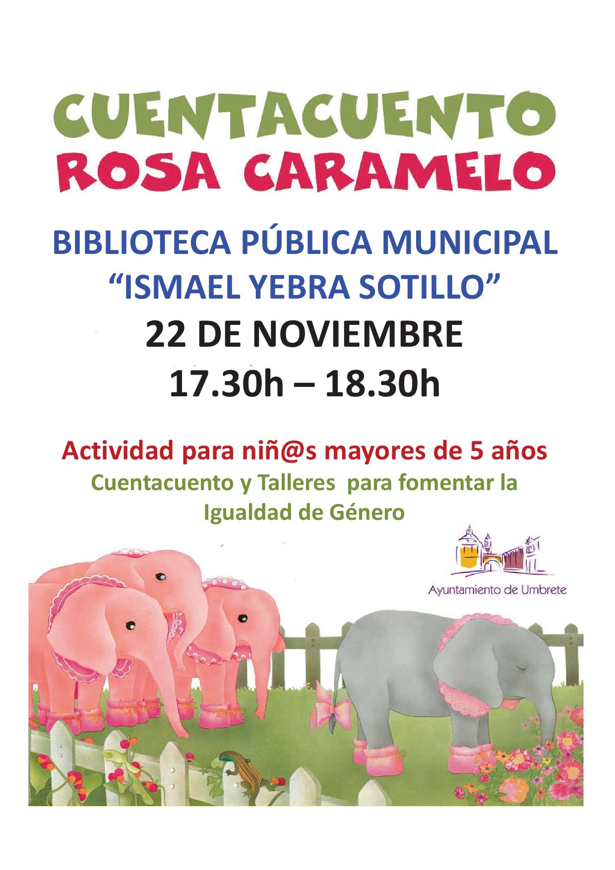 Para el próximo miércoles 22 de noviembre, la Delegación de Cultura del Ayuntamiento de Umbrete ha organizado en la Biblioteca Pública Municipal "Ismael Yebra Sotillo" un cuentacuentos para fomentar la igualdad de género entre los niños. Está dirigido a los mayores de 5 años.