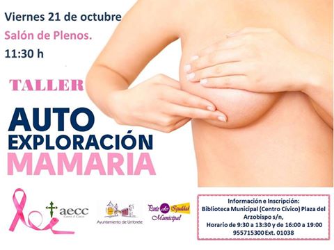 Organizado por el Punto de Igualdad Municipal de la Delegación de Igualdad y gracias a la colaboración de la Asociación Española Contra el Cáncer, se desarrollará el taller de Autoexploración Mamaria a cargo de la Doctora Lola Torres.