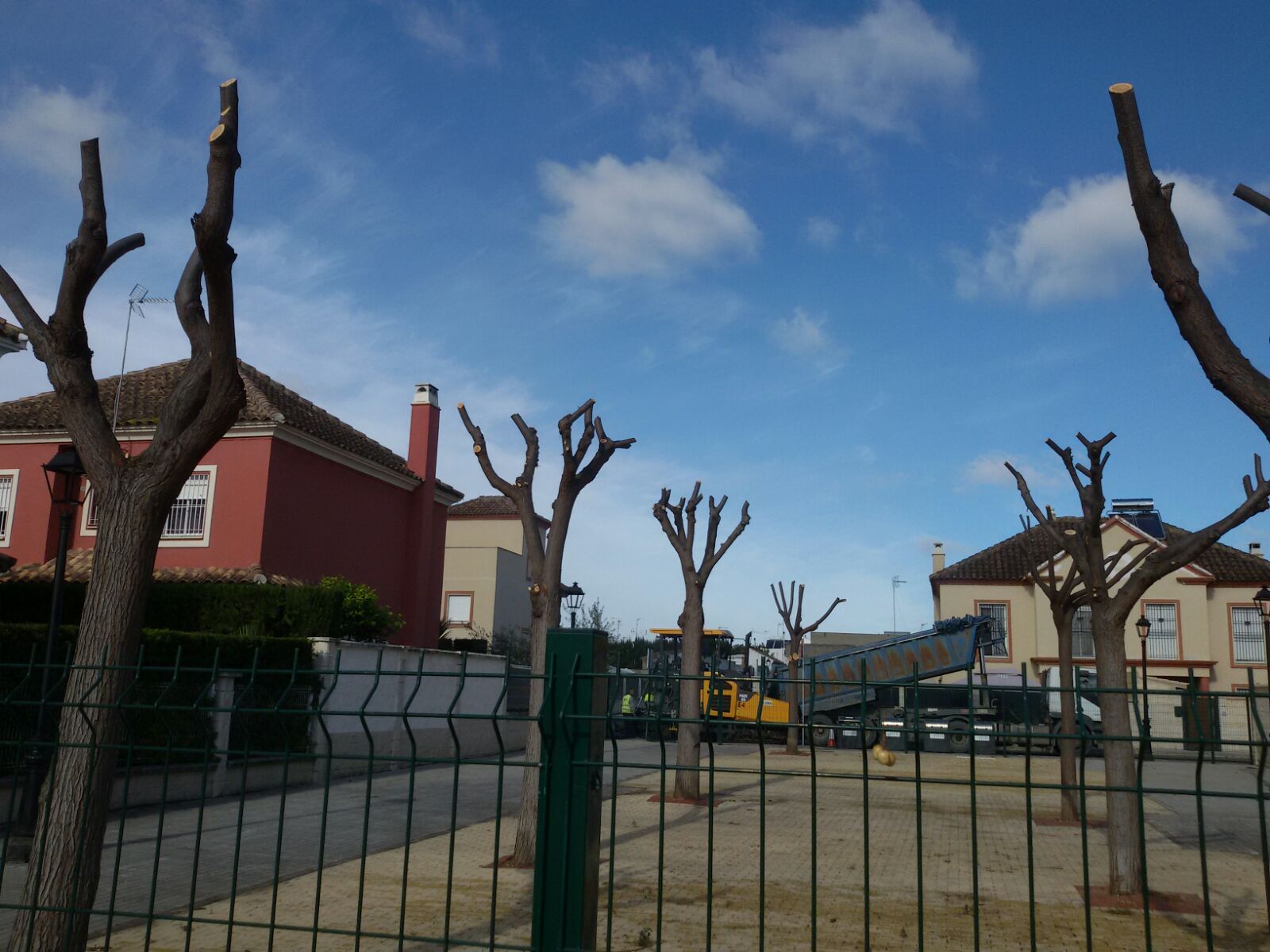 Se ha actuado con labores de poda de árboles y palmeras en la Plaza Rosa de Luxemburgo en Villas de la Herencia, en la Plaza Cristo de la Veracruz y en Camino Sanlúcar.