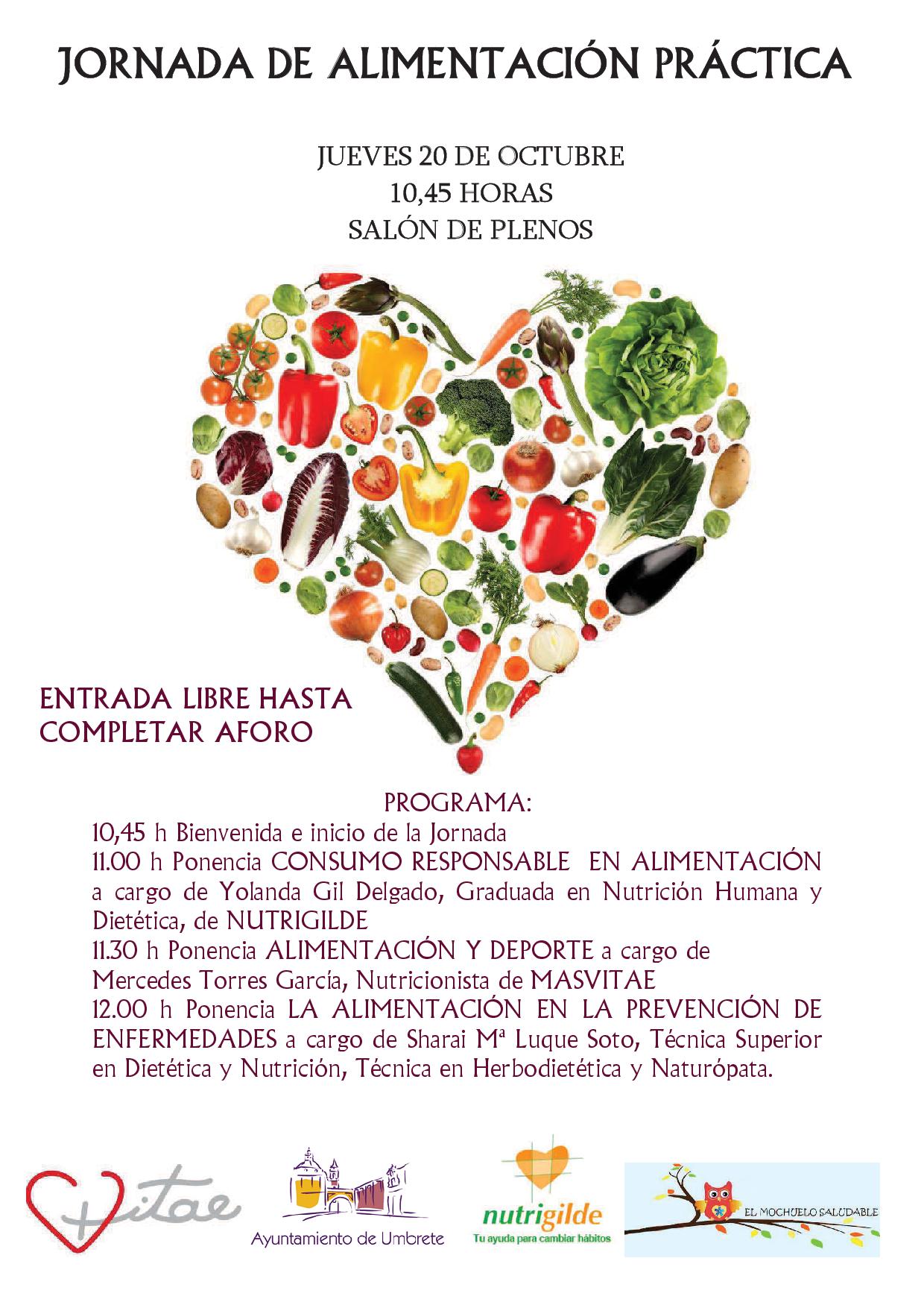 El Salón de Plenos del Ayuntamiento de Umbrete acogerá el próximo jueves 20 de octubre una Jornada de Alimentación Práctica, organizada por la Delegación de Salud y Consumo del Ayuntamiento de Umbrete con la colaboración de lasnutricionistas: Yolanda Gil Delgado (Nutrigilde), Mercedes Torres García (MasVitae) y Sharai Luque Soto (El Mochuelo Saludable)