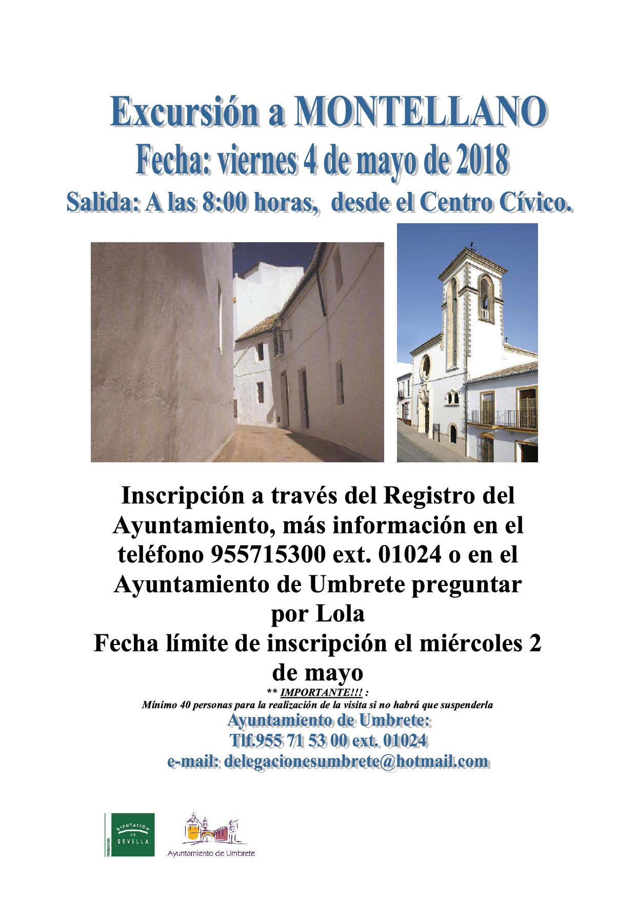 La Delegación de Turismo del Ayuntamiento de Umbrete organiza un viajea Montellanoel próximo viernes 4 demayo.