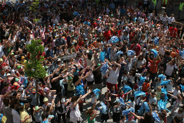 Ya en la puerta del Consistorio, y tras las intervenciones del Alcalde y del Delegado de Educación, los alumnos y alumnas han realizado varias coreografías y han derrochado ilusión.