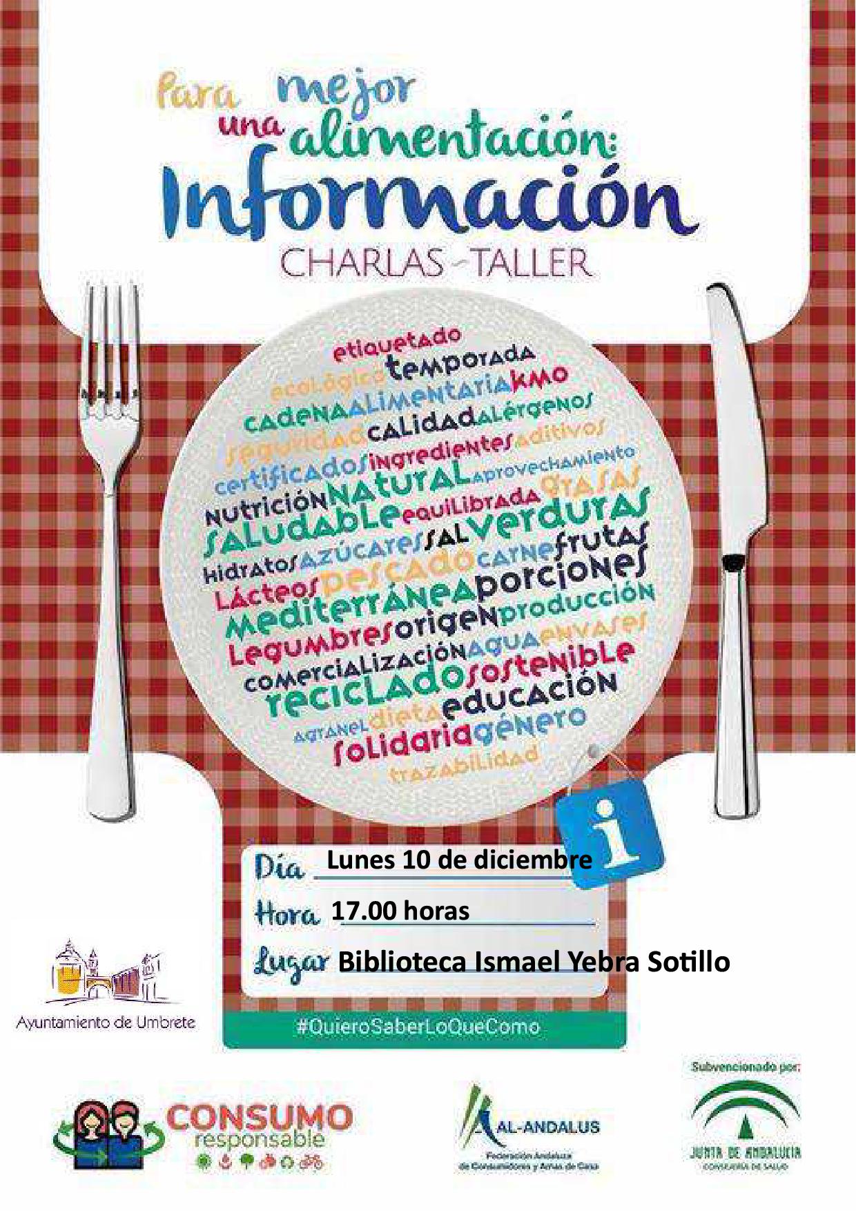 Imagen Ubicación Categoría noticia Salud Mostrar en el carrusel de la sección No Fecha Mié, 05/12/2018 - 16:21 Más información http://www.umbrete.es/es/actualidad/noticias/CHARLA-TALLER-SOBRE-ALIMENTACION/