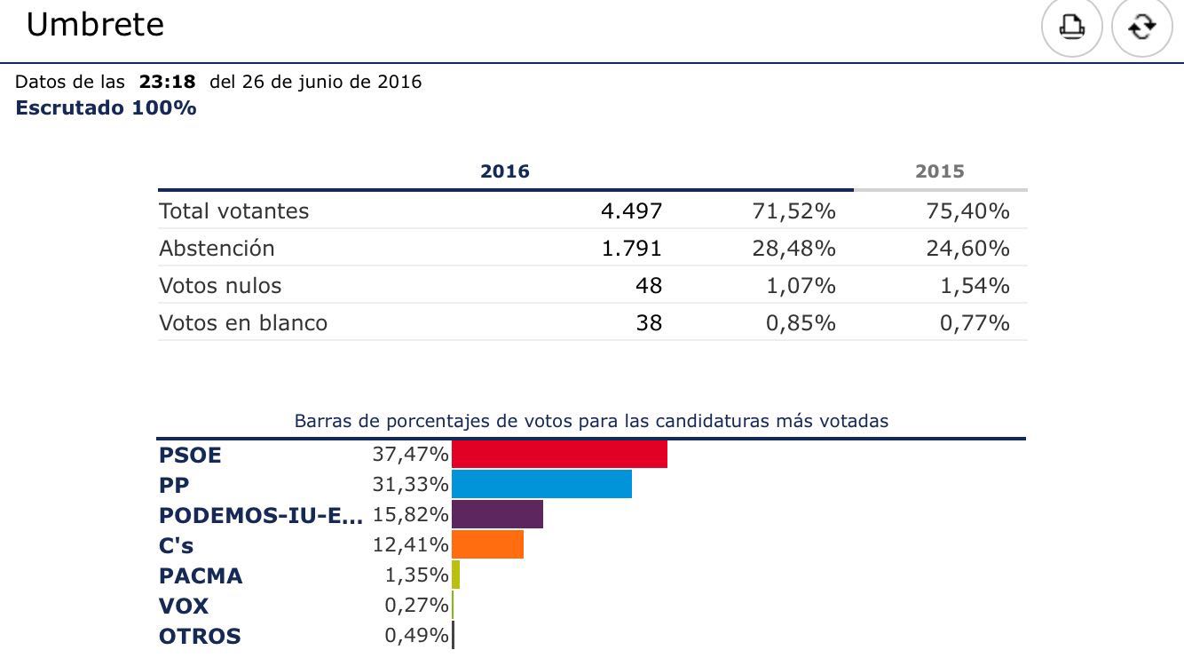 RESULTADOS ELECCIONES GENERALES 2016 EN UMBRETE