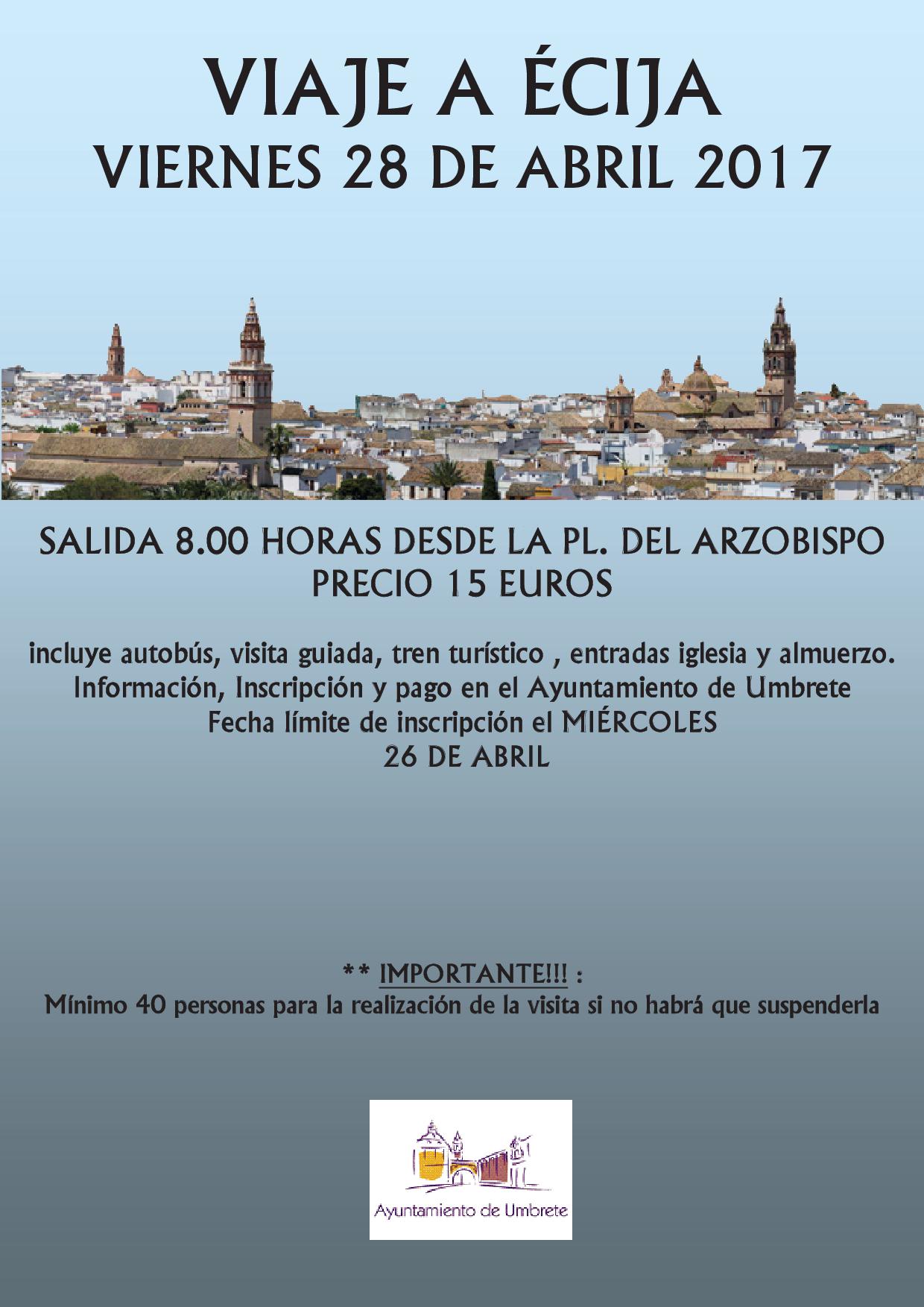Imagen Ubicación Categoría noticia Turismo Mostrar en el carrusel de la sección No Fecha Lun, 03/04/2017 - 07:13 Más información http://www.umbrete.es/es/actualidad/noticias/VISITA-A-ECIJA/