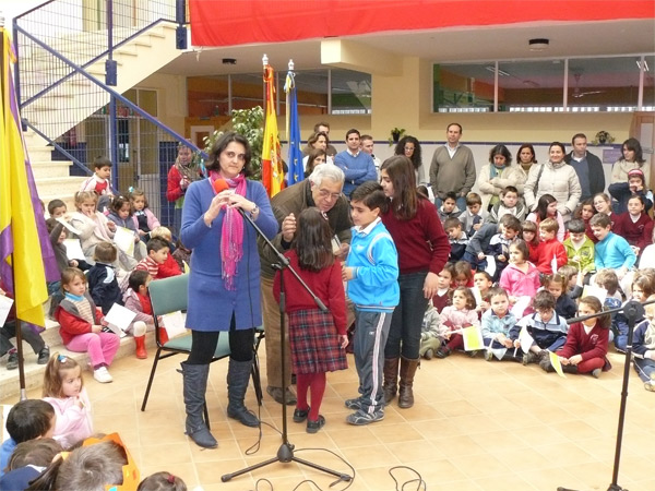 Los alumnos y alumnas obsequiaron a Pepe con varias canciones en suhonor y su nieto y nieta leyeron un texto que dejó a Pepe visiblemente emocionado.