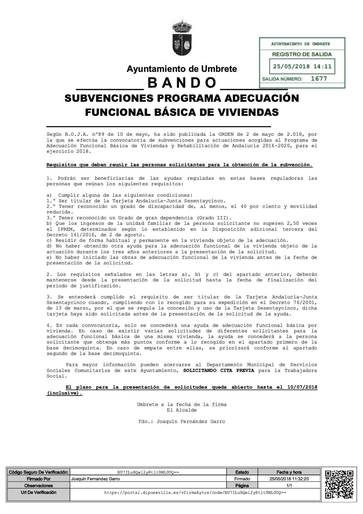 Imagen Ubicación Categoría noticia Servicios Sociales Mostrar en el carrusel de la sección No Fecha Mar, 29/05/2018 - 06:38 Más información http://www.umbrete.es/es/actualidad/noticias/SUBVENCIONES-PROGRAMA-ADECUACION-F…