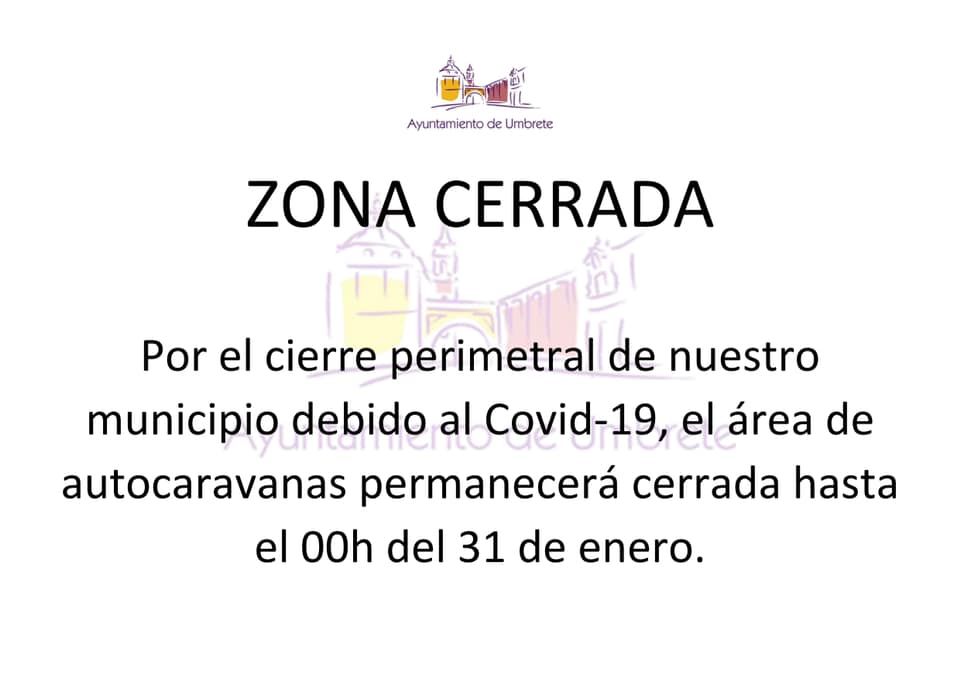 Imagen Ubicación Categoría noticia Turismo Mostrar en el carrusel de la sección No Fecha Jue, 21/01/2021 - 14:15 Más información http://www.umbrete.es/es/actualidad/noticias/CIERRE-DEL-AREA-DE-AUTOCARAVANAS/