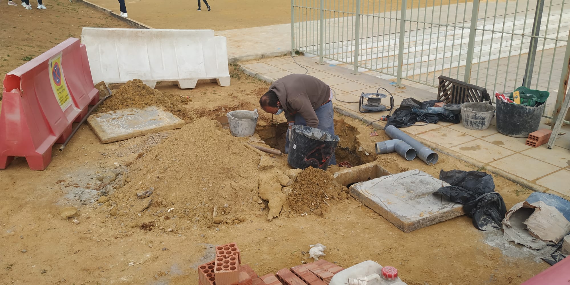 Se trata de una actuación necesaria que nos demandan desde la Dirección del Centro, y que consiste en la instalación de un imbornal para el drenaje del patio de recreo de albero. Era necesario corregir esa deficiencia pues en periodos de fuertes lluvias se forman acumulaciones de agua en determinadas zonas.