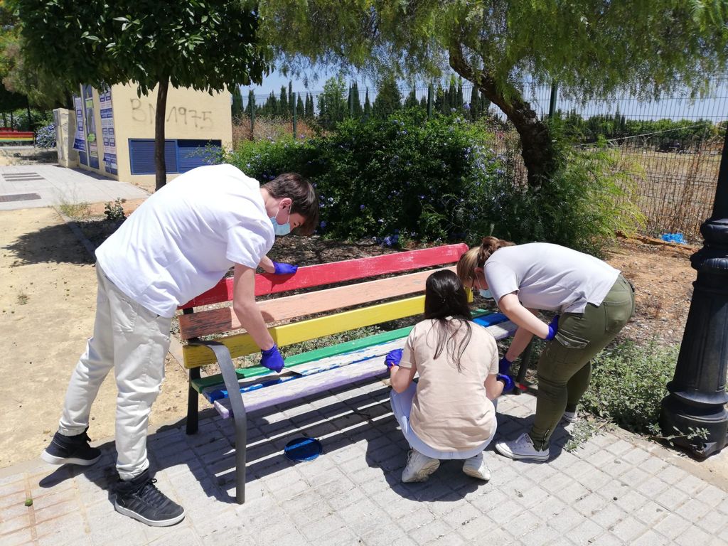 Para finalizar, el alumnado ha pintando los bancos con los colores de la diversidad en los que escribirán mensajes positivos a favor de la diversidad.