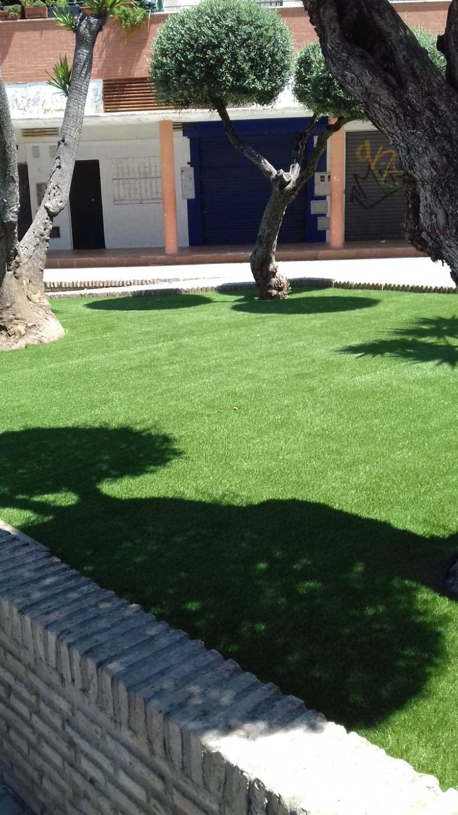 Ya ha finalizado la colocación del césped artificial en la Plaza Hermanos Álvarez Quintero, y en la Plaza San Juan de la Cruz la colocación de césped artificial está ejecutada al 50% aproximadamente.