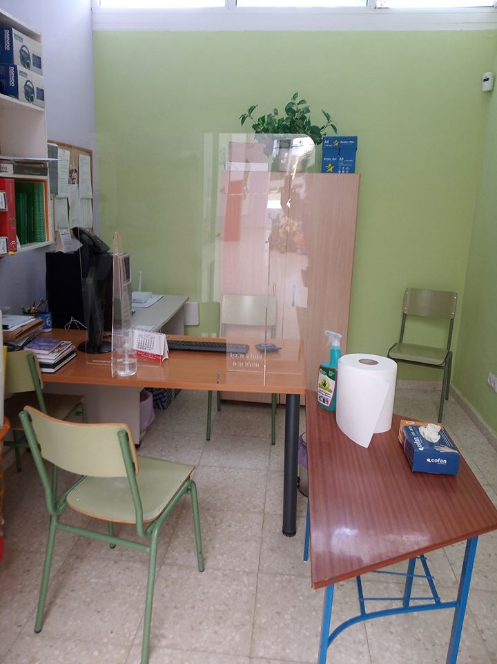 Ya tenemos nuestra escuela infantil preparada, con sus medidas de seguridad oportunas (mampara, gel hidroalcohólico, señalización, etc.), para recibir a las familias que deseen solicitar plaza para sus hijos/as en nuestro centro.