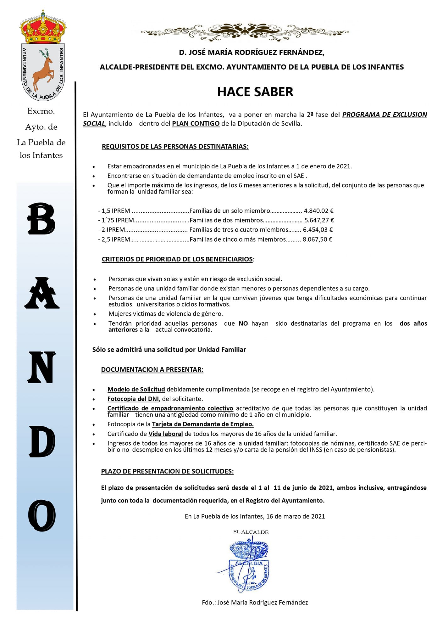 Todas las personas interesadas pueden acudir al Ayuntamiento para inscribirse, para más información pueden llamar al teléfono de servicios sociales 954809017.
