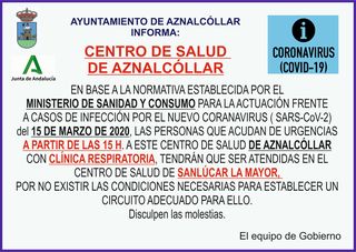 AYUNTAMIENTO DE AZNALCÓLLAR INFORMA: CENTRO DE SALUD