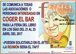 PARA LA FERIA DEL LIBRO EN LOS DÍAS DEL 21 AL 23 ABRIL DEL 2017 --PUEDEN SOLICITARLO EN EL AYTO. -LA REUNIÓN SERIA EL 7/4/17Imagen