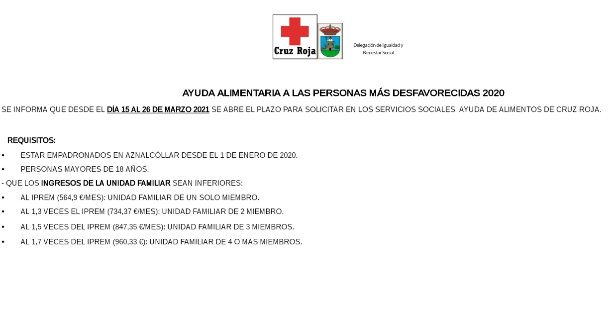 - ESTAR EMPADRONADOS EN AZNALCÓLLAR DESDE EL 01 ENERO 2020.
