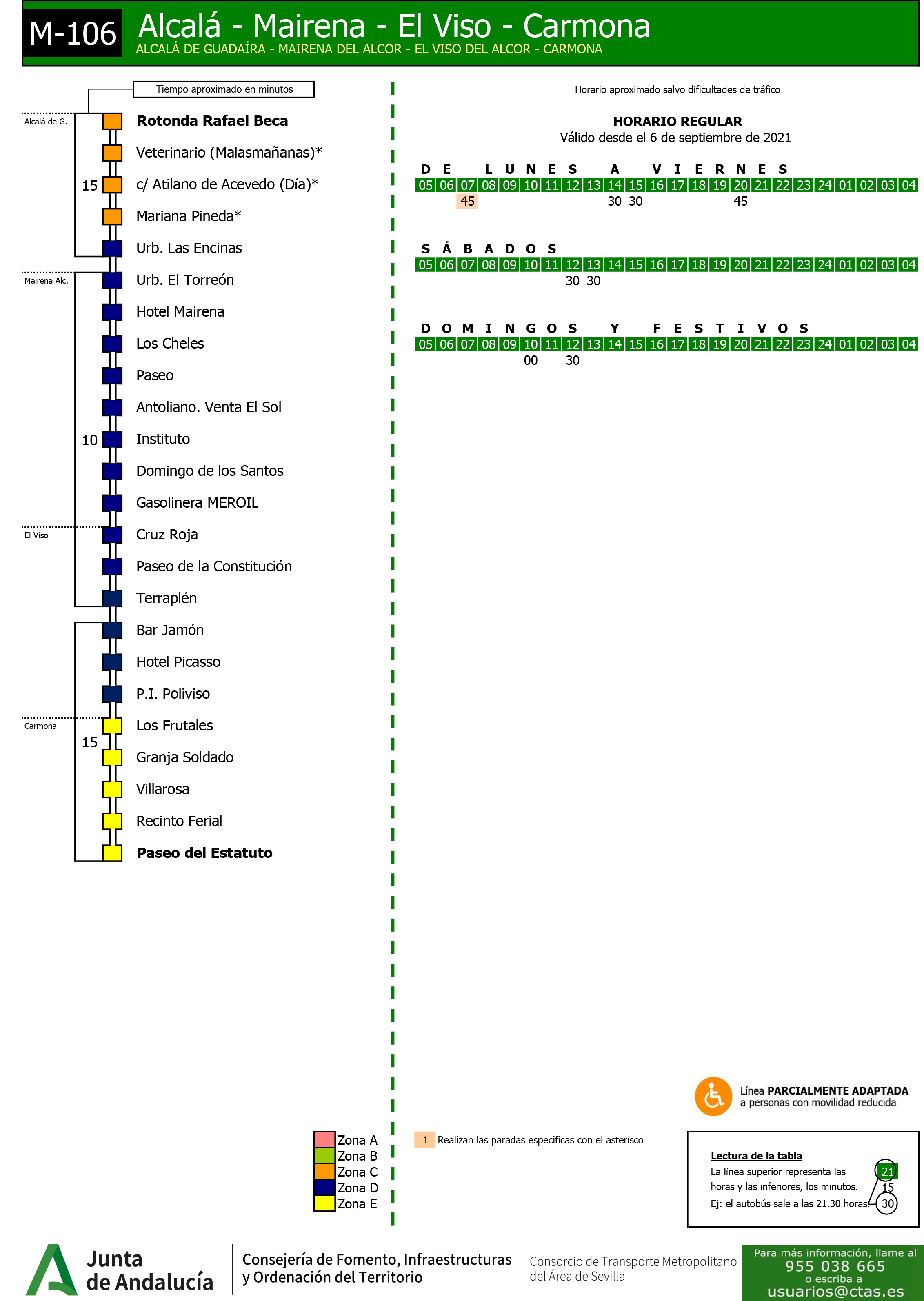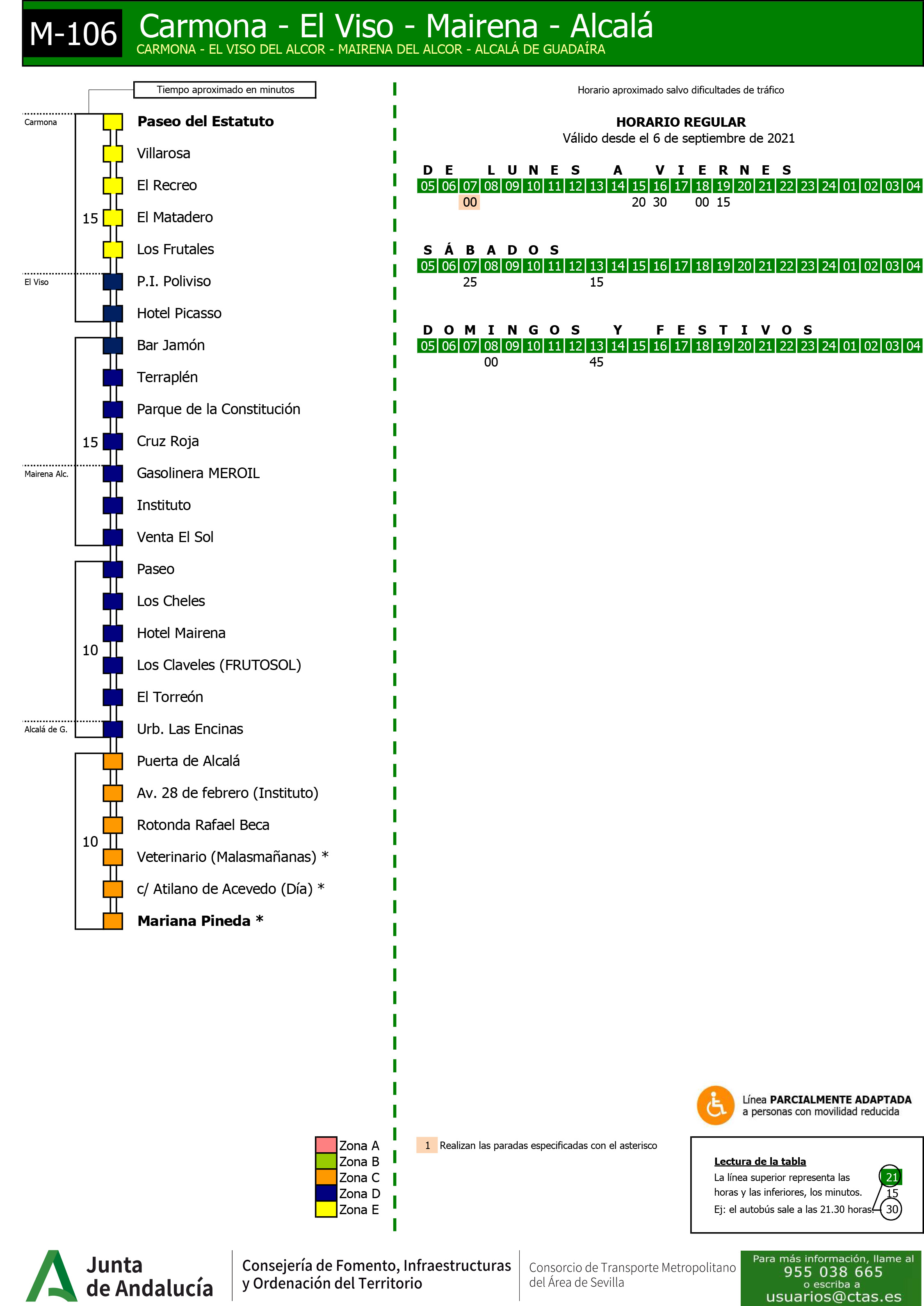 El Consorcio de Transporte Metropolitano Área de Sevilla da a conocer los horarios de invierno de las líneas de autobuses metropolitanos, que entran en vigor el lunes 6 de septiembre de 2021.