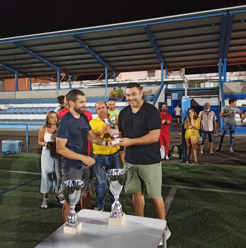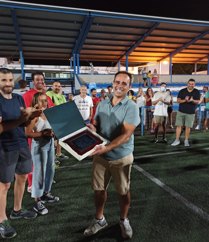 El Alcalde, Pedro Oropesa, el Concejal de Deportes, Diego Perejón, y el ciclista Diego Ruiz entregaron a los equipos participantes los trofeos, donados por el Ayuntamiento para el encuentro benéfico. Donde además fue homenajeado el veterano local José Miguel Rodríguez (Blas), que recibió una placa conmemorativa en reconocimiento a su trayectoria y dedicación al Benacazón C.F
